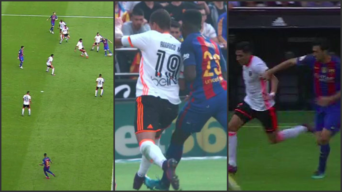 Pero la polémica no quedó ahí. En el 33’, diez minutos después del tanto que debió ser anulado, el conjunto che reclamó un penalti de Umtiti sobre Rodrigo. El zaguero francés cargó con su hombro sobre la espalda del delantero hispanobrasileño, al que acabó derribando dentro del área del Barça.