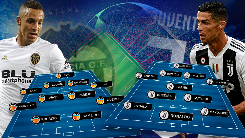 Enfrente tendrán al finalista de 2017 y doble campeón de la competición, que se ha confeccionado un equipo para intentar volver a lo más alto, especialmente con el fichaje de Cristiano Ronaldo. Además cuentan con jugadores de primer nivel como Paulo Dybala, que era duda hasta última hora pero finalmente ha entrado en la convocatoria. Allegri cuenta con las bajas de Barzagli, De Sciglio y Spinazzola, por lo que Cancelo será titular en su regreso a Mestalla.