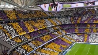 El fondo sur del estadio Santiago Bernabéu se engalanó en los prolegómenos del encuentro que enfrentó a Real Madrid y Juventus en la tercera jornada de la fase liga...