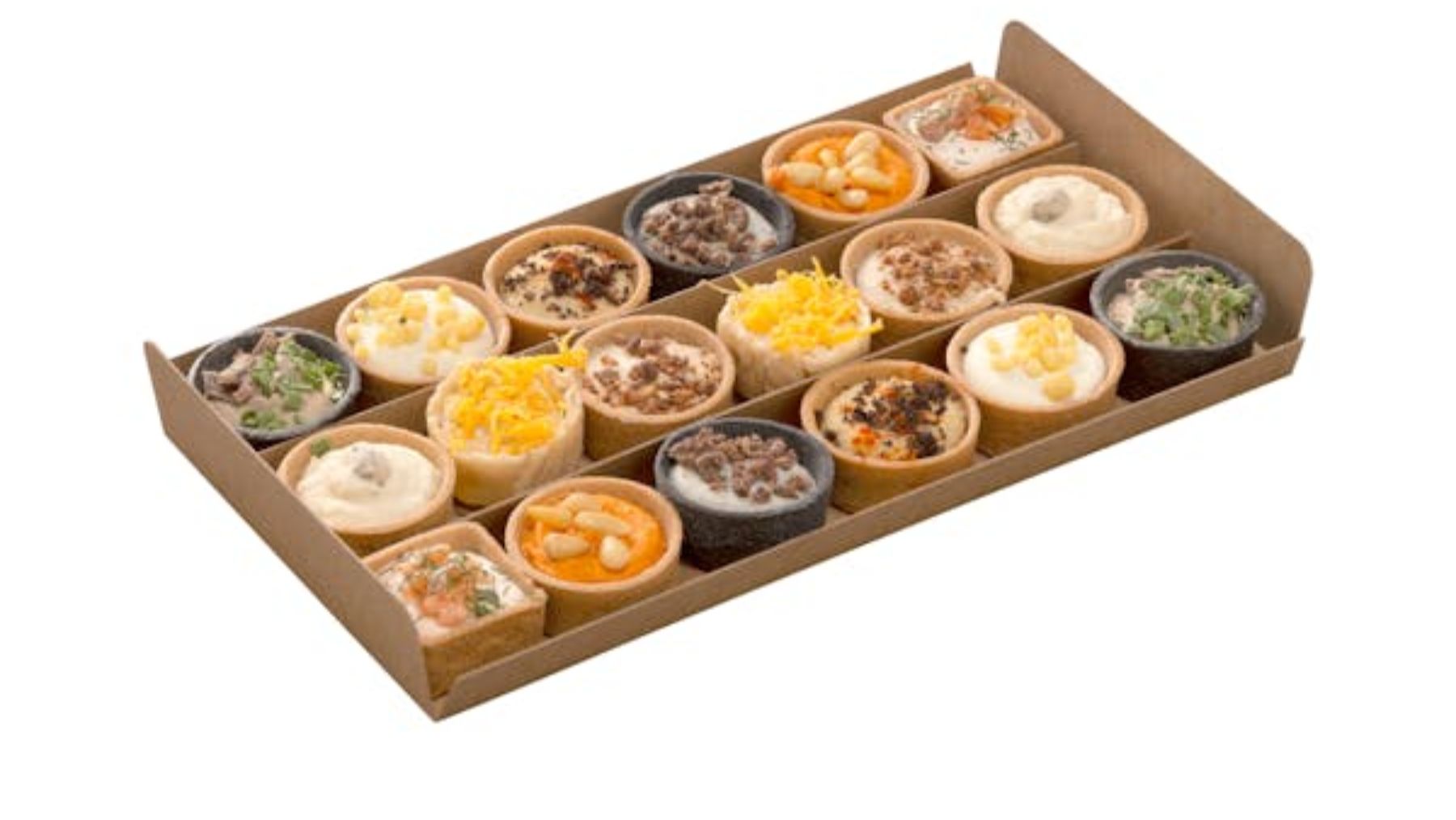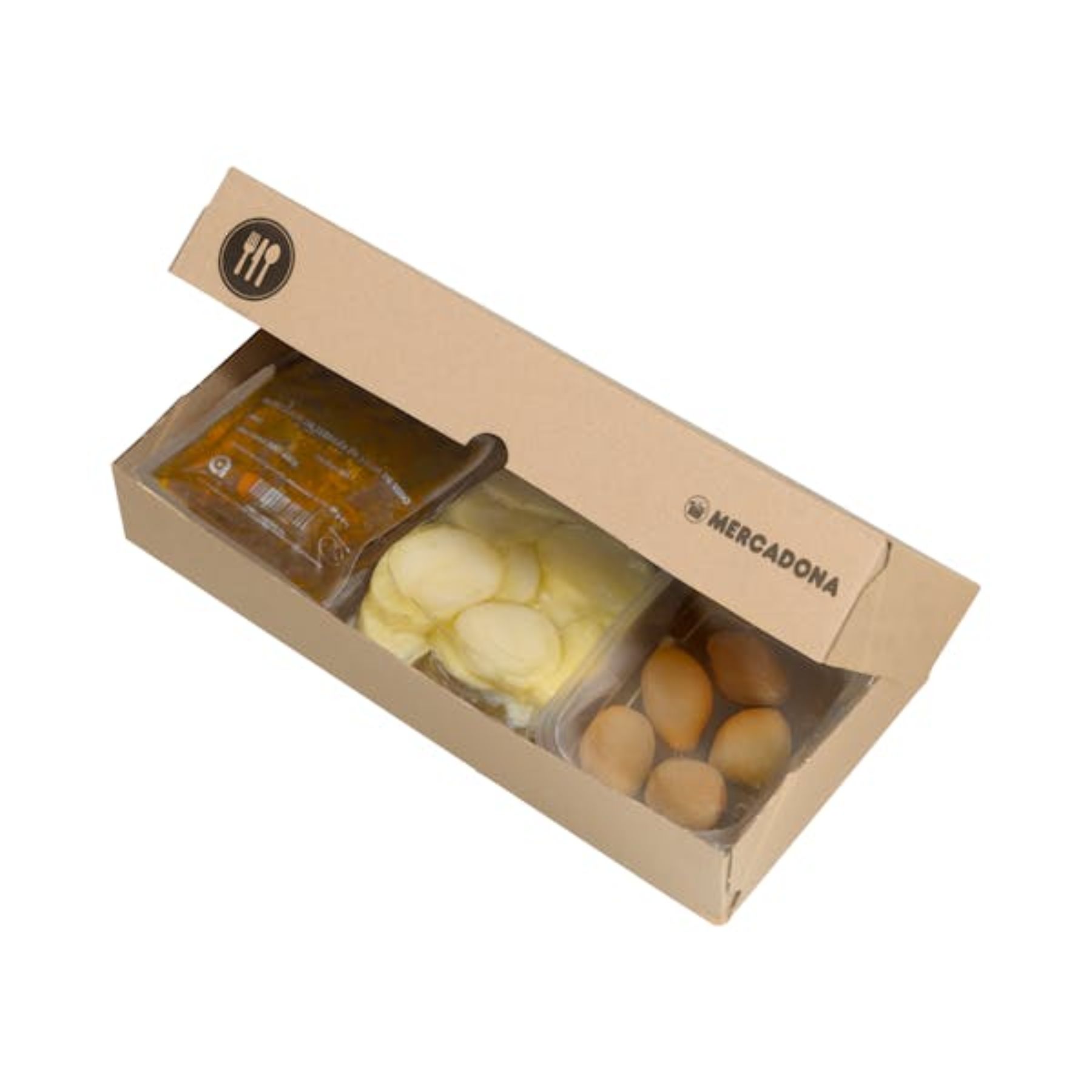 Mercadona ofrece una bandeja de 18 aperitivos (dos de cada sabor), empezando para avanzar el plato principal. Desde salmón y eneldo hasta queso e higos, los otros siete aperitivos incluyen queso Stilton y crujiente de mango, ensaladilla rusa, picadillo mexicano y miel, trufa con mermelada, queso curado, membrillo y nuces roastbeef y waffle de foie, manzana caramelizada y huevo hilado. Precio: 15 euros para 3/4 personas.