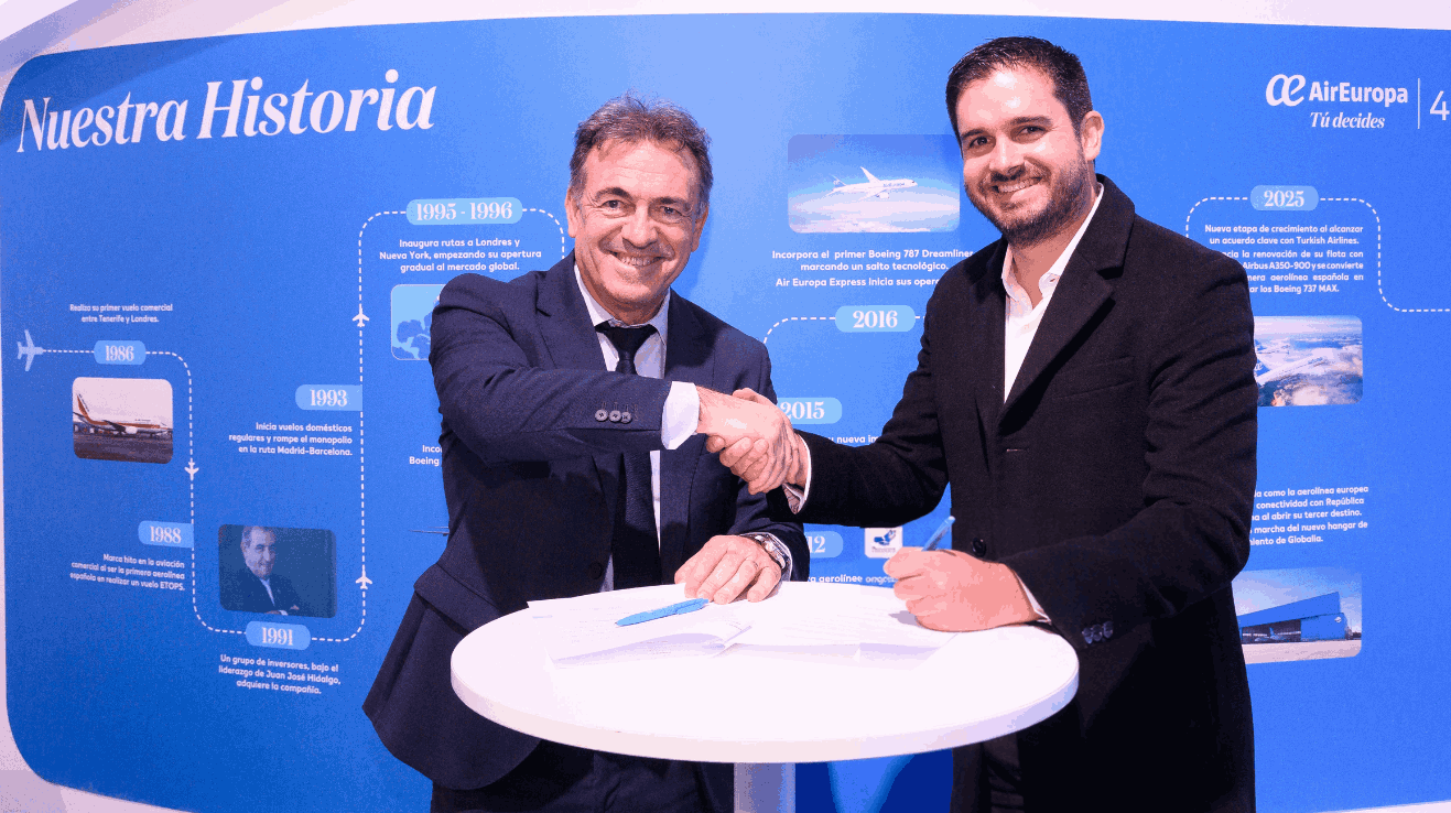 Con la firma del nuevo acuerdo comercial, Air Europa incorpora Chile a su red en el continente americano, consolidando su posición como una de las principales opciones para conectar Europa con Latinoamérica y fortaleciendo su alcance a lo largo de la costa del Pacífico Sur.