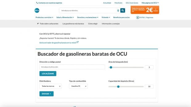 La OCU también ha habilitado un buscador para que los españoles puedan encontrar la gasolinera más barata cerca de su casa. A través de la página web de la organización, se debe introducir la dirección o código postal y ajustar el límite de kilómetros. Para encontrar la gasolinera más barata, también tendrás que seleccionar el combustible y la marca que desees o, en su defecto, si te interesan «todas las marcas».