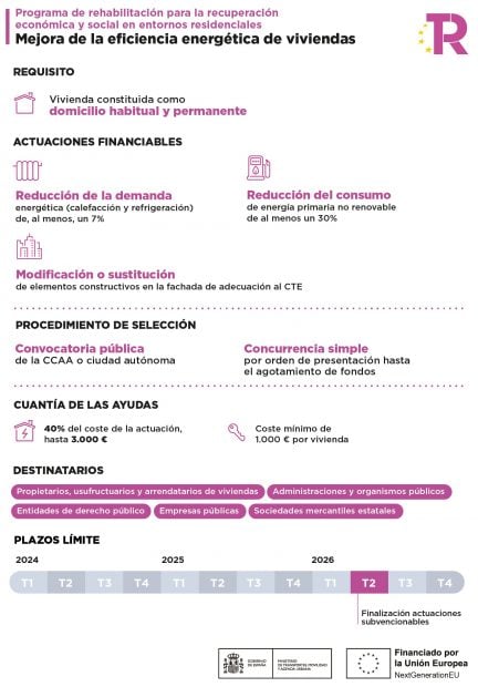 Para solicitar esta ayuda de hasta 3.000 euros, las actuaciones objeto de financiación deberán estar finalizadas antes del día 30 de junio de 2026. La justificación ante el órgano instructor, en este caso las comunidades autónomas, se tendrá que hacer en un plazo máximo de tres meses desde la finalización de las actuaciones.