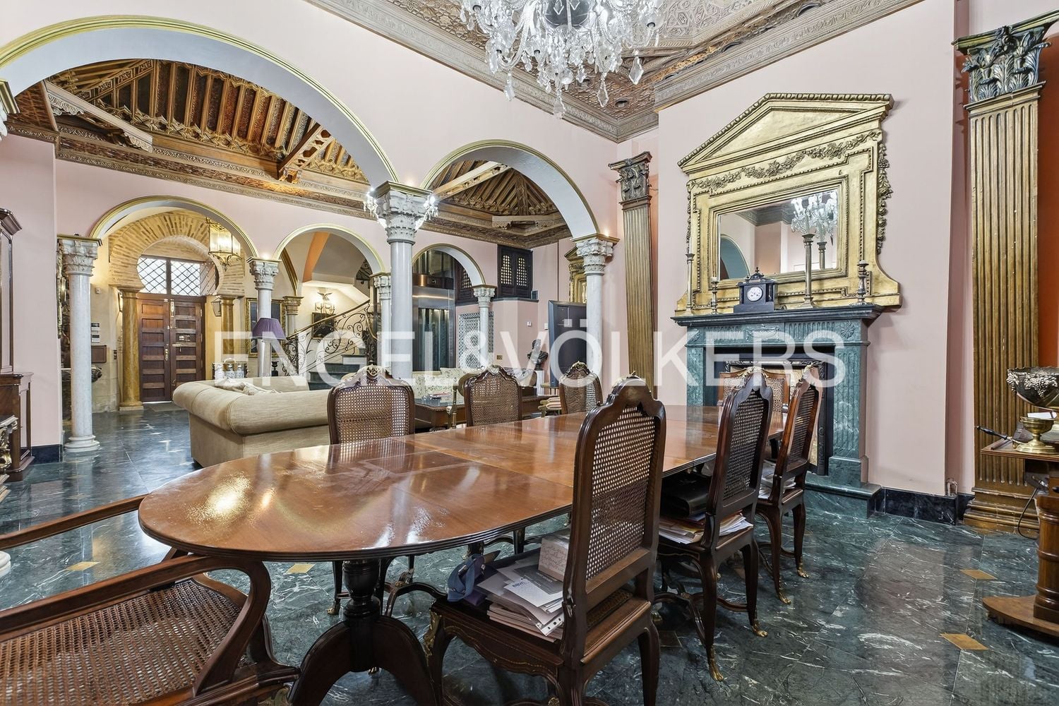 Durante la rehabilitación se incorporaron elementos de alto valor artesanal, como techos inspirados en el estilo mudéjar elaborados por especialistas, o puertas de cedro del Líbano talladas a mano. Cada detalle refuerza el carácter singular del inmueble, algo especialmente valorado en el mercado de lujo actual.
