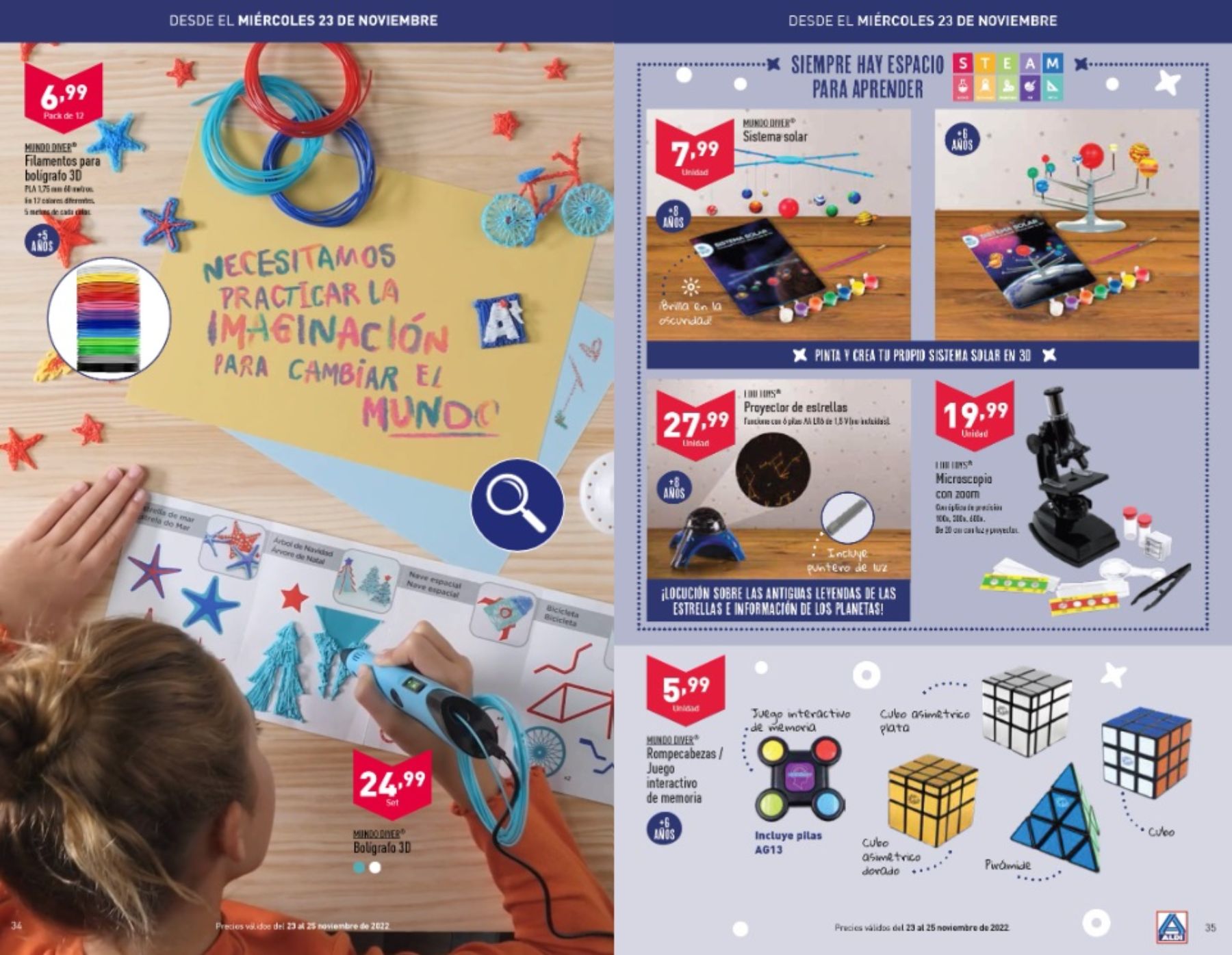 Para niños algo más grandes, a partir del miércoles 23 de noviembre, tendremos de oferta los juguetes que desarrollan la imaginación como el bolígrafo 3D que podréis encontrar por 24,99 euros.