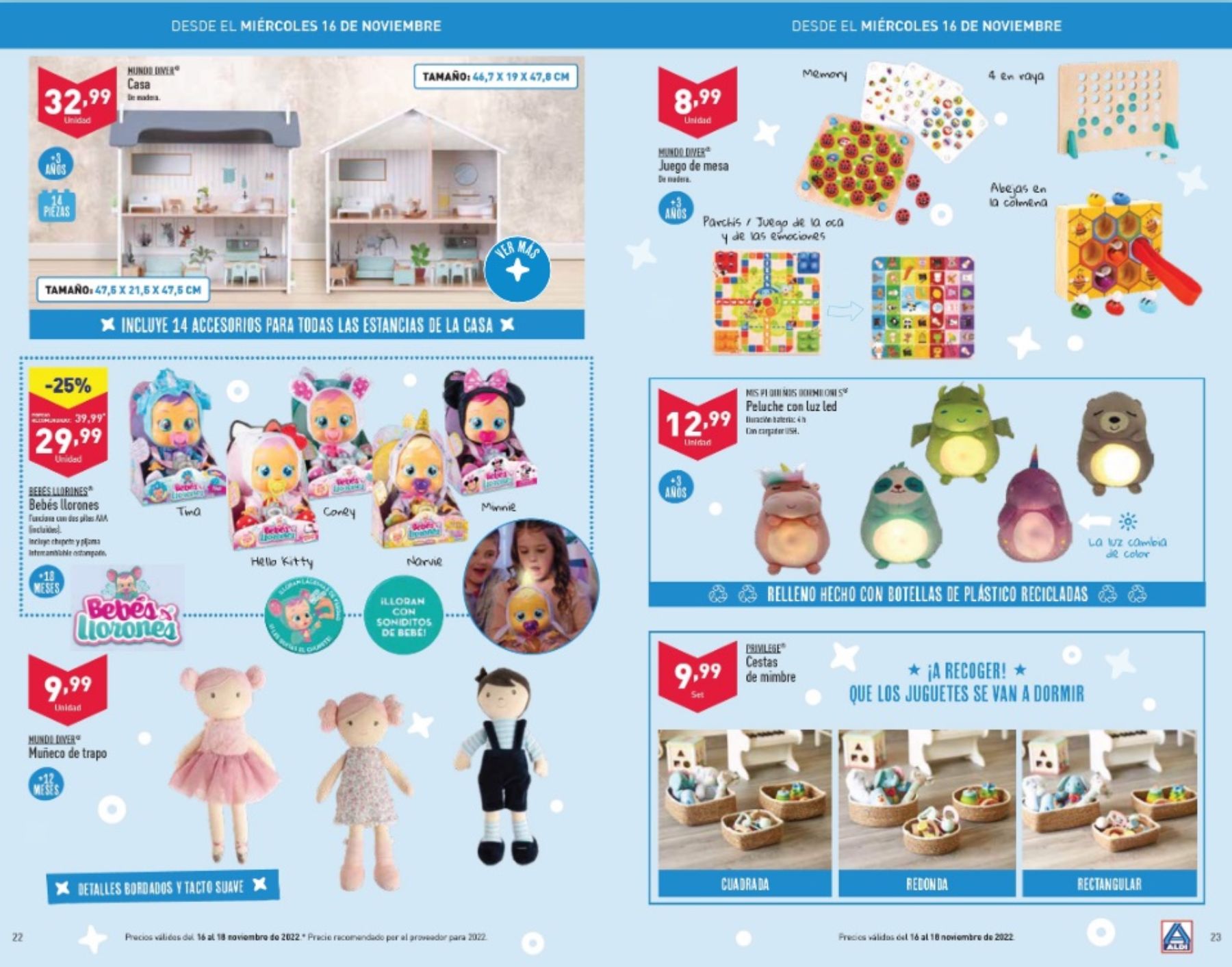 También será el momento de comprar la casa de muñecas de Aldi que estará de oferta por 32,99 euros o algunos los muñecos que todos los niños pequeños piden para esta Navidad como los bebés llorones por 29,99 euros.