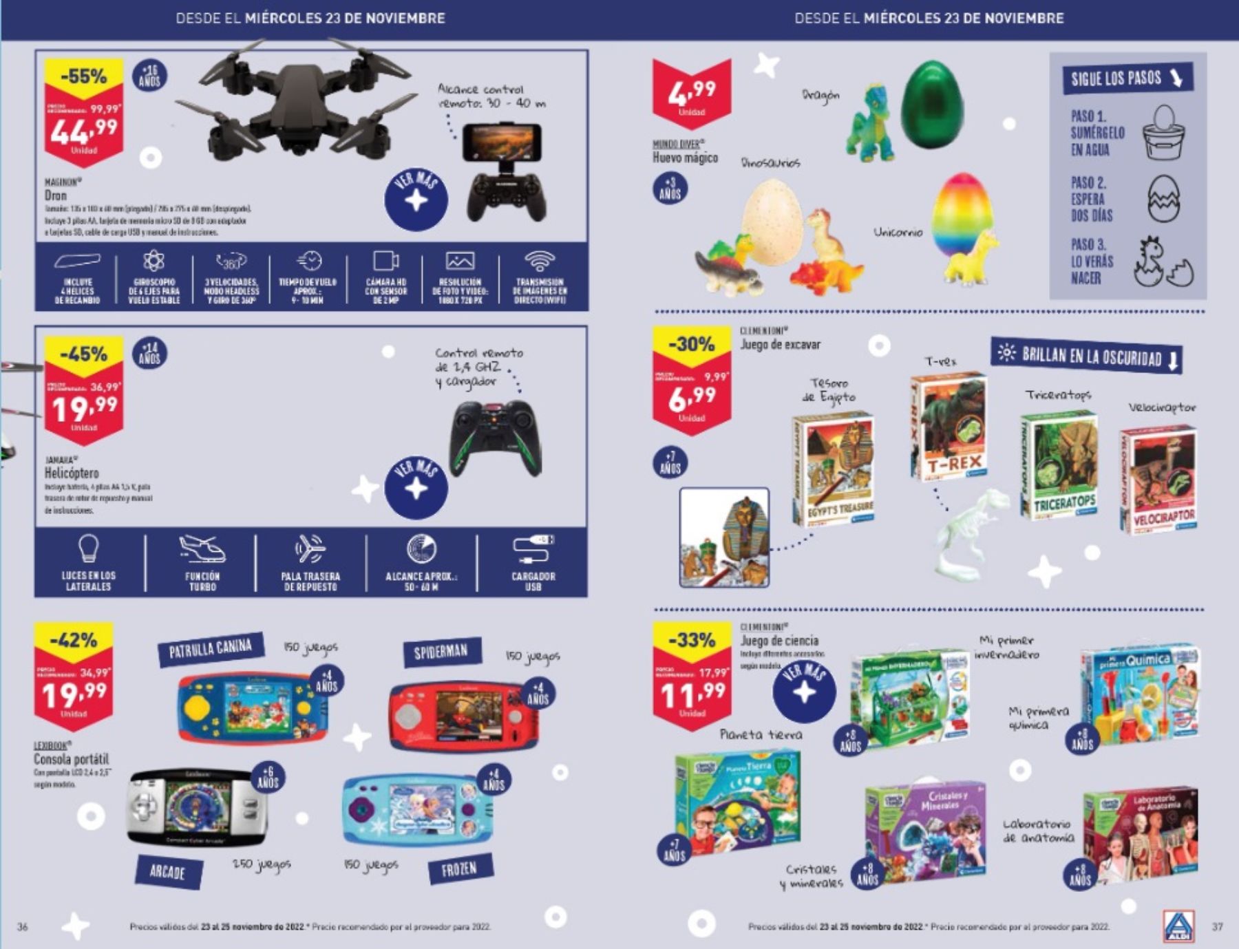 También juegos de ciencia, pequeñas videoconsolas y hasta un dron que tendrá en esa semana un descuento del 50%.
