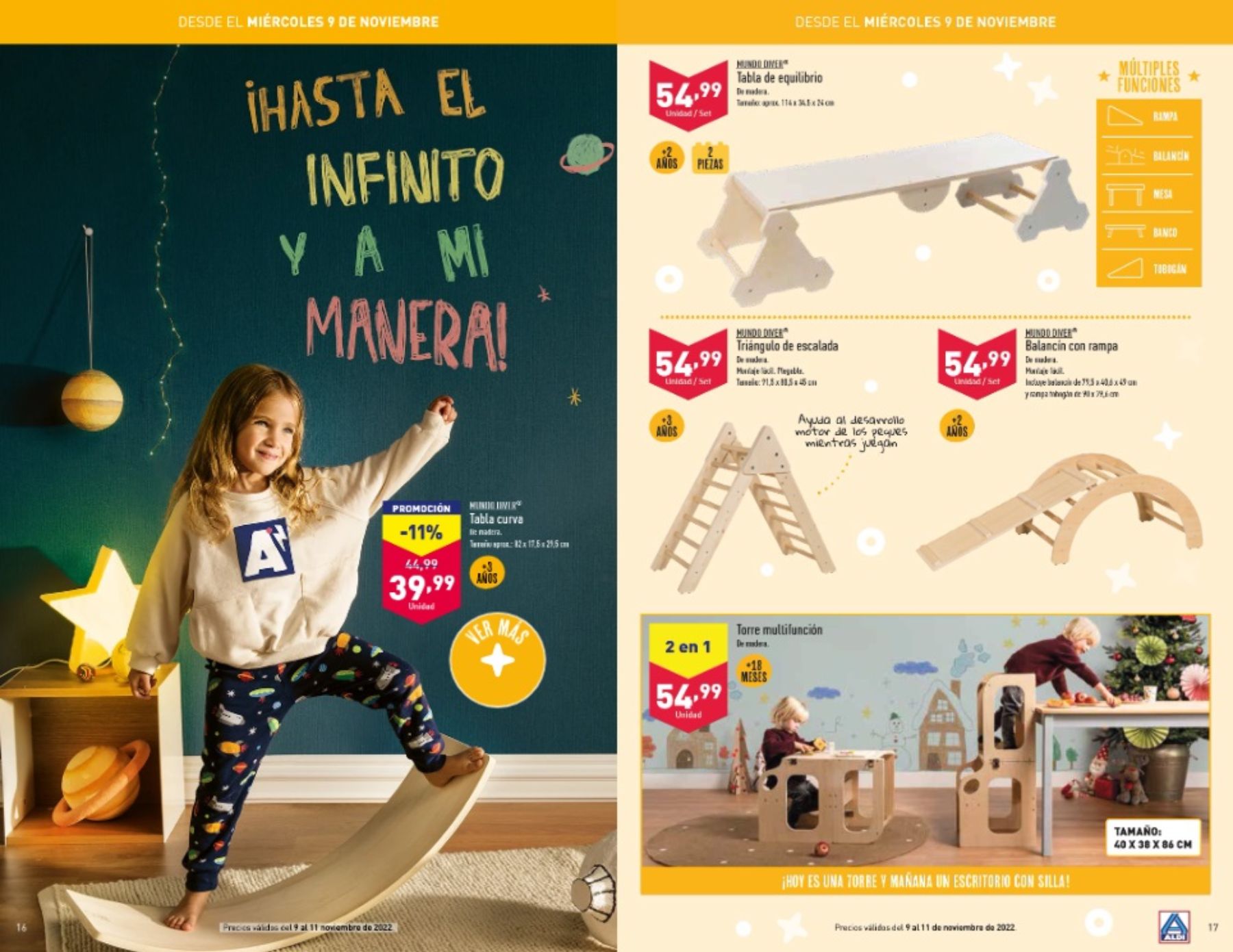 Toma nota también porque entre las ofertas tienes también muchos juguetes de madera para que los niños se ejerciten. Es el caso por ejemplo de la tabla de equilibrio o el triángulo de escalada así como la torre multifunción por 54,99 euros.