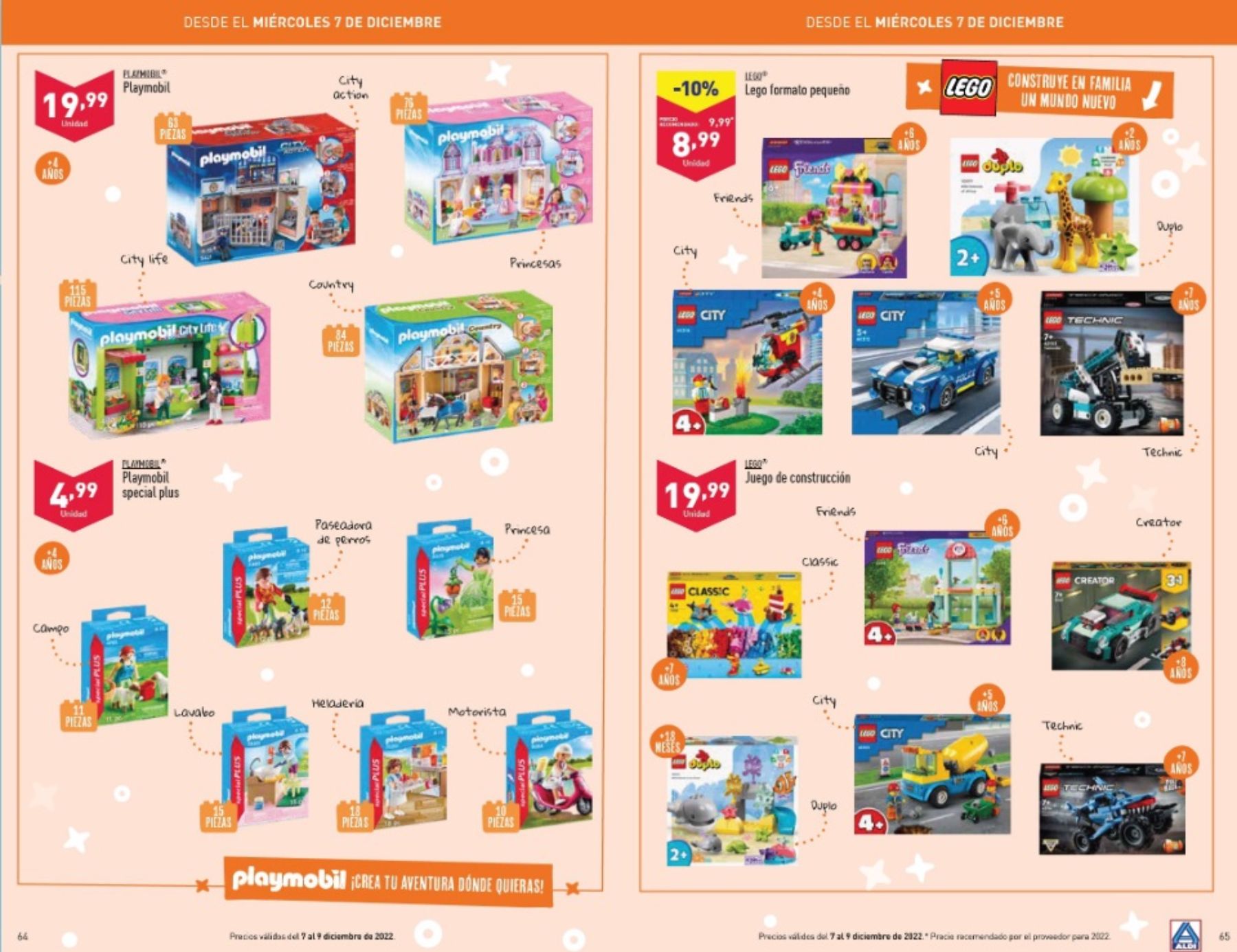 Desde el miércoles 7 de diciembre podremos ver de oferta todos los que son juguetes de construcción y personajes como los juguetes de Playmobil con precios especiales a 19,99 euros para los packs o descuentos del 10%.