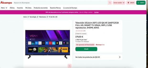 Alcampo ha puesto a la venta una televisión de 40 pulgadas por 179 euros
