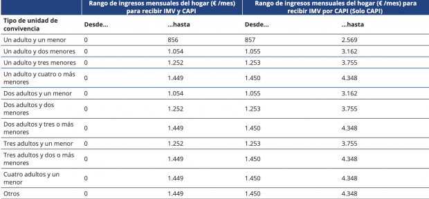 Hay que tener en cuenta que el CAPI es un complemento del Ingreso Mínimo Vital y forma parte de él. Una persona que cumpla con los requisitos podrá acceder al Complemento de Ayuda para la Infancia y no recibir el IMV, ya que los límites de renta y patrimonio del CAPI son más amplios. Por ejemplo, en el caso de que el tipo de unidad de convivencia esté formado por un adulto y un menor, el rango de ingresos será de 857 euros al mes hasta 2.569 euros. En el caso del IMV, no se podrán superar los 856.