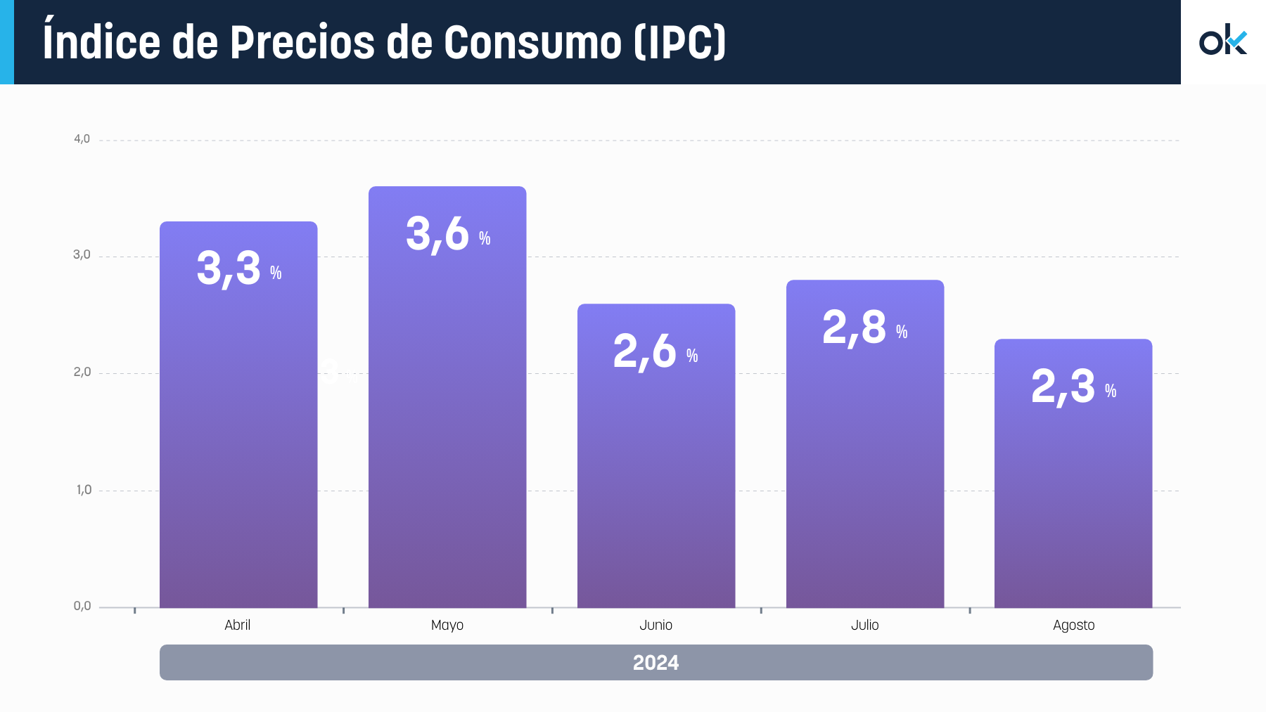 La inflación descendió en agosto hasta el 2,3%, un retroceso considerable en comparación con junio, pero que refleja que España aún se sitúa por encima del nivel que los bancos centrales consideran necesario para que haya estabilidad de precios, el 2%. Por su lado, la tasa subyacente sólo cayó una décima, hasta el 2,7%. Así lo ha desvelado este jueves el Instituto Nacional de Estadística (INE), quien ha publicado los datos definitivos del Índice de Precios al Consumo (IPC).
