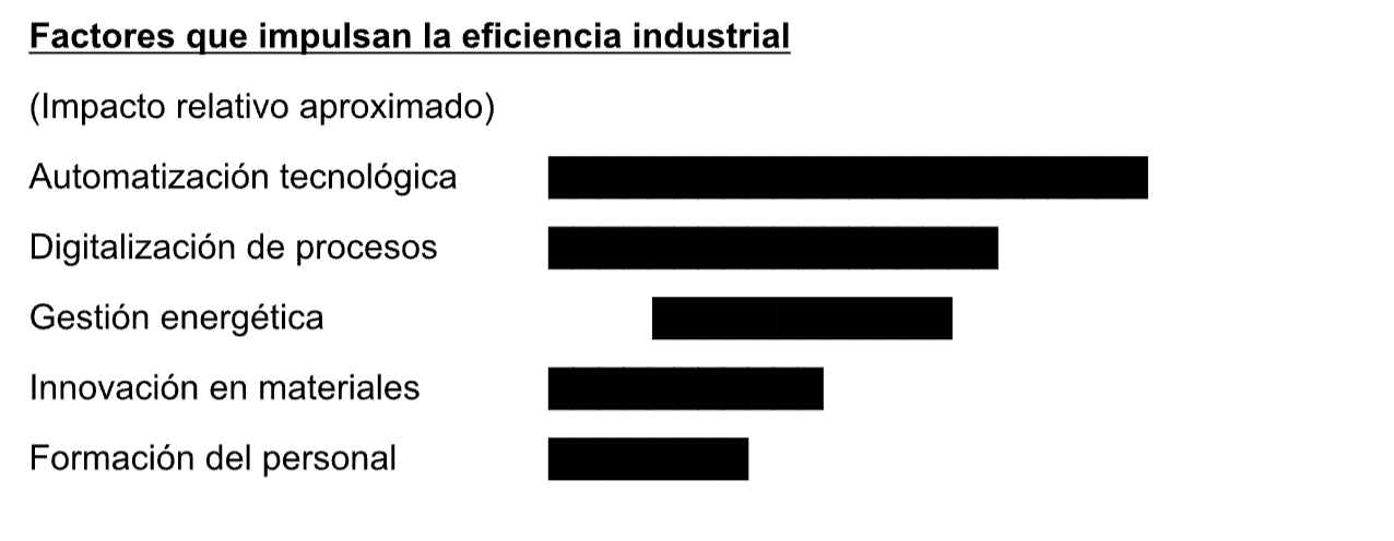 A modo ilustrativo, el siguiente gráfico resume los principales factores que influyen en la eficiencia industrial dentro de las pymes: