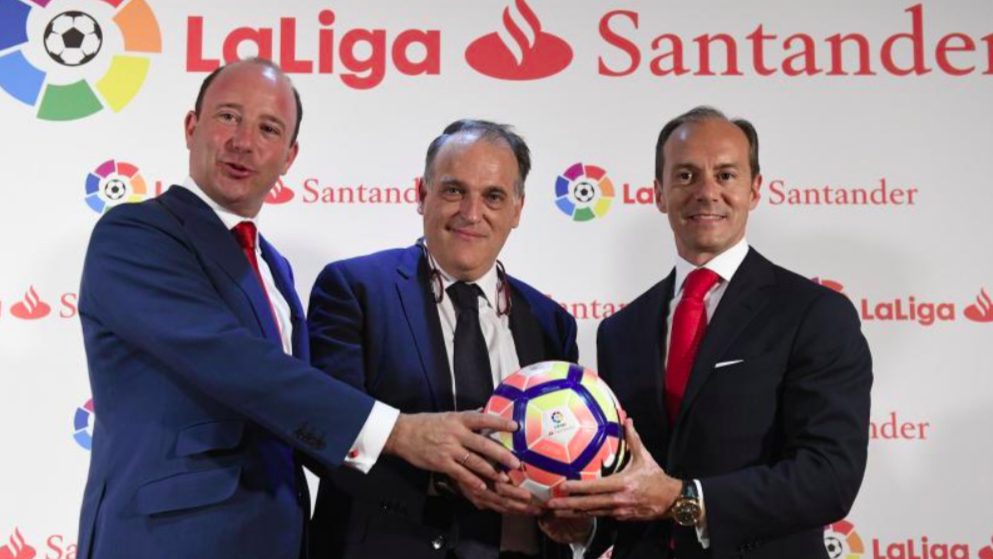 LaLiga busca nuevos patrocinadores y, según ha podido saber OKDIARIO, Javier Tebas ya ha tanteado a varios bancos españoles por si Banco Santander decidiera no seguir adelante con el patrocinio que acaba el próximo verano, si bien es cierto que si sendas partes estuvieran de acuerdo se podría prorrogar un año más. Fuentes del sector financiero han confirmado a este periódico que los organizadores de la Liga española no están viendo los toros de la barrera, y quieren estar preparados por si el patrocinio con la entidad que preside Ana Botín se viene abajo.