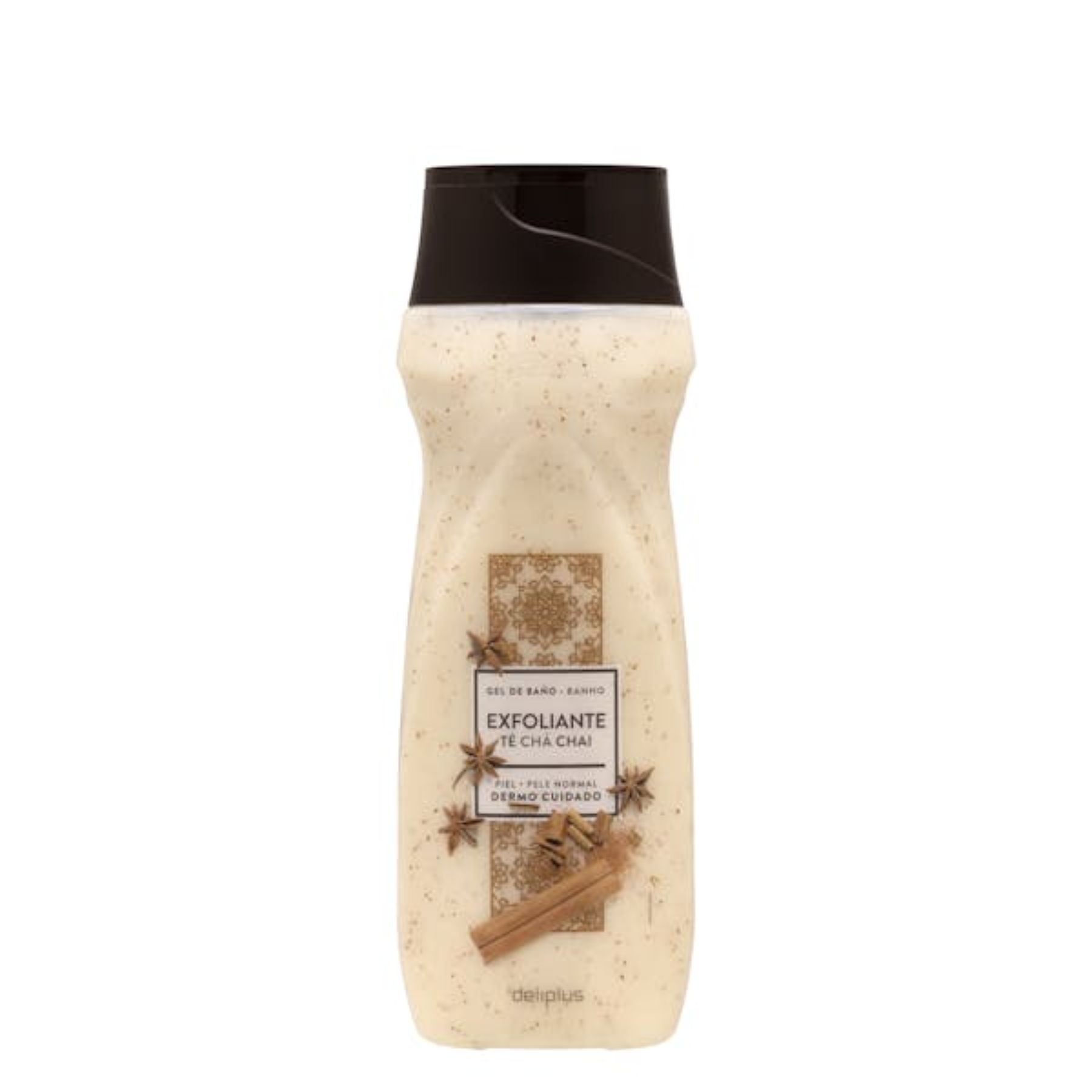 Se trata del Gel de baño exfoliante Té Chai Deliplus que es apto para piel normal y que cuenta con unas pequeñas partículas de cáscara de nuez que junto a una textura cremosa, nos permite exfoliar la piel para dejarla no sólo limpia tras la ducha, sino también muy suave.
