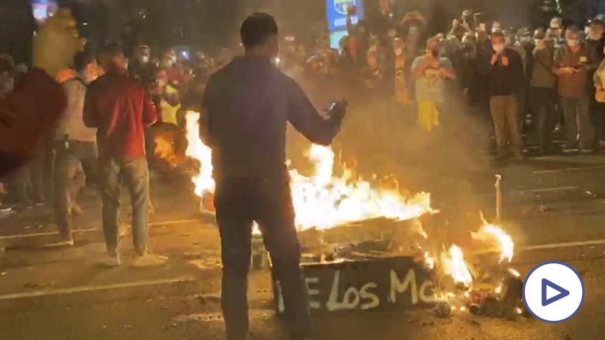 La acción de protesta ha terminado en la plaza Cataluña, donde se han quemado los muñecos dentro de los ataúdes, y se ha formado una pequeña hoguera delante de la cabecera. Han organizado la acción los sindicatos UGT, CC.OO., USOC y CGT, y durante el recorrido la afluencia de personas ha hecho difícil mantener las distancias de seguridad para prevenir contagios de coronavirus.