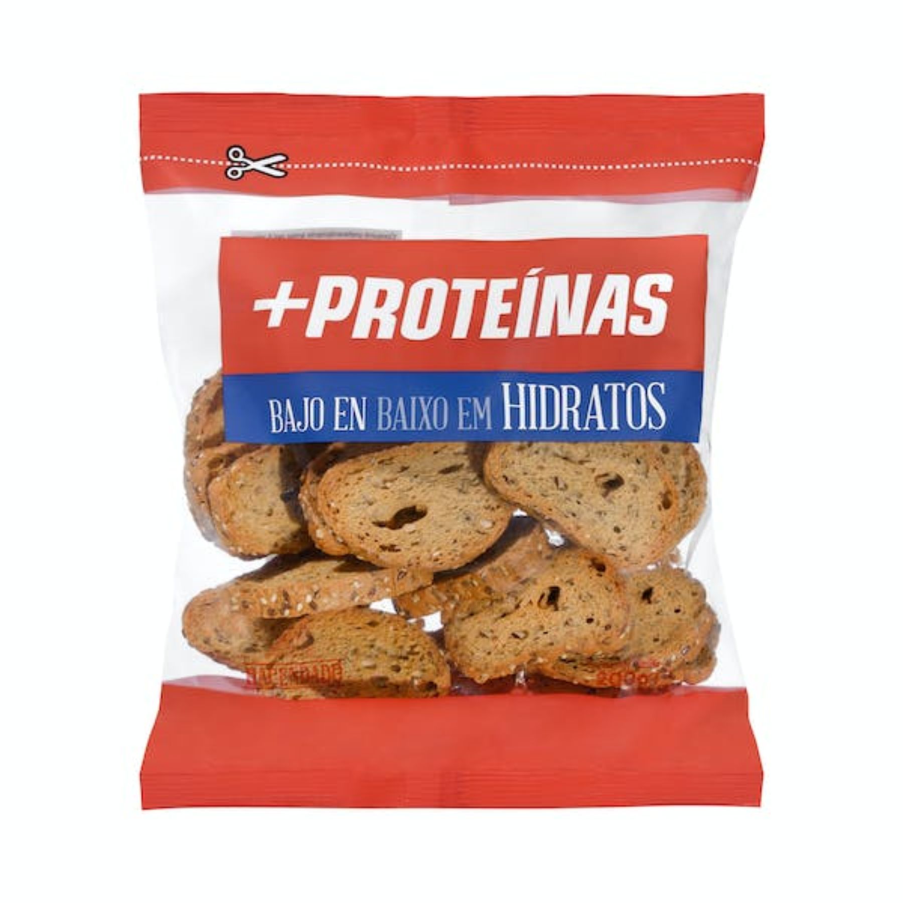 Se trata del Pan tostado +Proteínas Hacendado bajo en hidratos que cuenta en su fórmula con una mezcla de harinas y proteínas vegetales (38%) (proteína de arroz, harina integral de centeno, harina integral de garbanzo, proteína hidrolizada de trigo), así como semillas de lino (15%), sésamo (7%), pipas de girasol (7%), aceite de oliva virgen extra, levadura y sal.
