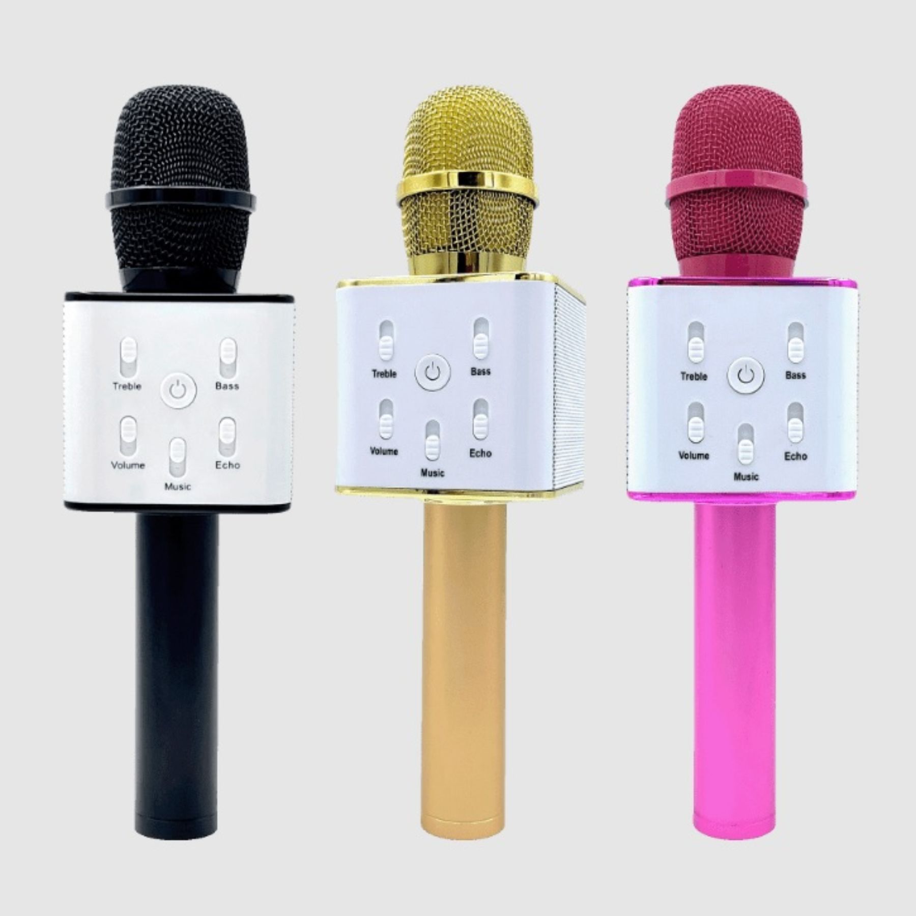 Si te fijas, el micrófono cuenta con un serie de botones para que lo puedas utilizar de forma fácil. En el centro viene el botón de encendido. Luego tiene uno para el volumen, otro para elegir la música de la canción que desees cantar y además, dispone de un botón para darle más o menos eco a tu voz, así como otros dos botones que regulan los tonos graves y ajustan también los tonos agudos.