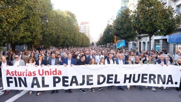 Miles de asturianos se movilizaron este viernes, 17 de octubre, reclamando el fin del peaje del Huerna, el cual tiene una vigencia establecida hasta el año 2050. En concreto, unas 5.000 personas recorrieron este viernes, 17 de octubre, la calle Uría de Oviedo, desde la estación de ferrocarril hasta la plaza de La Escandalera, para reclamar la supresión del peaje.