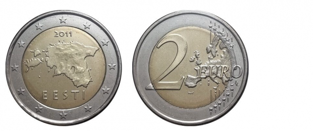 Esta moneda de 2 euros fue la primera que se acuñó en la historia tras su entrada en el euro y es obra del artista Lembit Lõhmus, que fue el ganador de una votación en la que participaron gran parte de los 1,3 millones de habitantes del país en 2011. En este año fue acuñada esta pieza en la Casa de la Moneda de Finlandia.