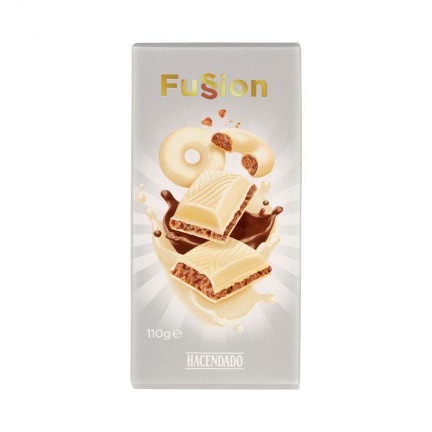 El nombre lo dice todo: Fussion. La idea detrás de esta gama de chocolates de Hacendado es sencilla pero efectiva: mezclar lo mejor del chocolate con otros ingredientes que los convierten en doblemente irresistibles. Así, lo que encontramos en este nuevo chocolate de Mercadona es mucho más que un simple dulce: es una experiencia sensorial que juega con la textura del chocolate blanco, el crujiente de la galleta y la cremosidad de un relleno con notas de cacao que envuelven el paladar desde el primer mordisco.