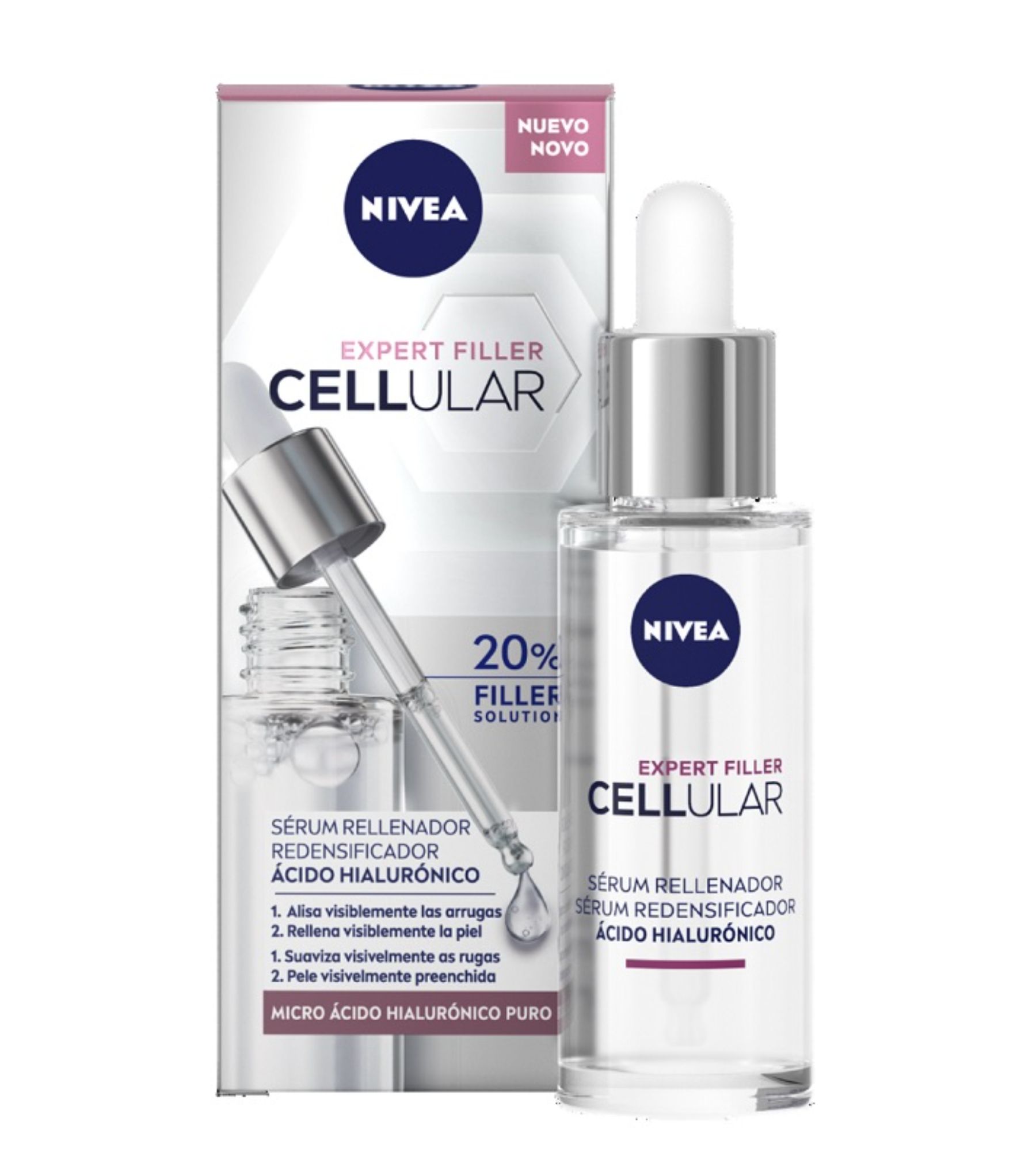 El ácido hialurónico lleva años siendo el rey indiscutible de los ingredientes cosméticos, y con razón. Su capacidad para atraer y retener agua en la piel lo convierte en un aliado perfecto contra la sequedad, la pérdida de firmeza y las líneas de expresión. De este modo, lo que hace especial al Nivea Cellular Expert Filler es su formulación en la que este ácido es protagonista, si tenemos en cuenta que lleva un 20% de Hydro Elixir, que incluye ácido hialurónico micro y macro para actuar en diferentes capas de la piel. Esto se traduce en una acción inmediata en la superficie, rellenando las arrugas visibles, y otra a largo plazo, que mejora la elasticidad con el uso continuado.