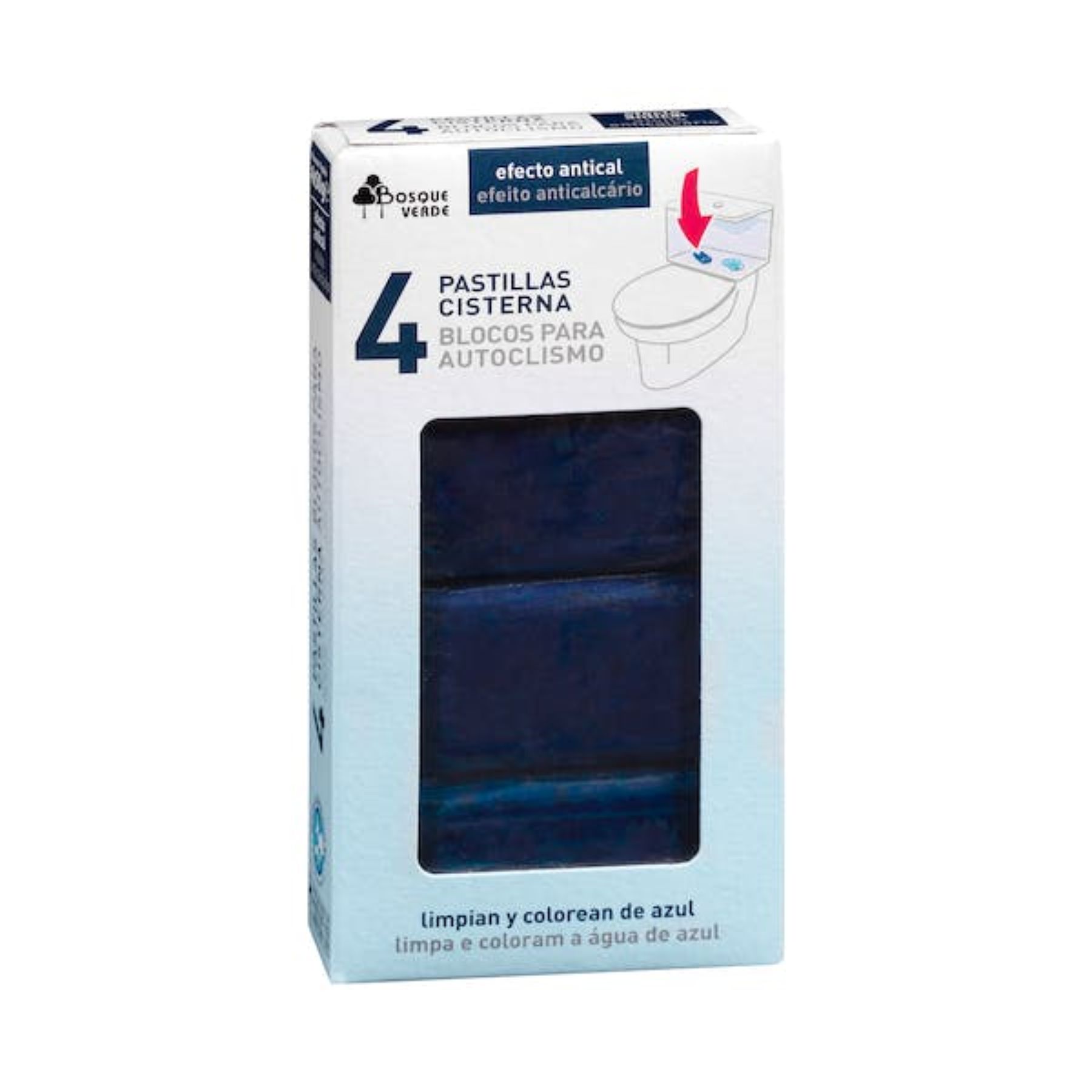 Por último, las pastillas cisterna efecto antical de Bosque Verde que nos permitirán tener el WC siempre limpio y además evitan la formación de cal. Se vende en una caja con 4 pastillas a un precio de 1,30 euros.