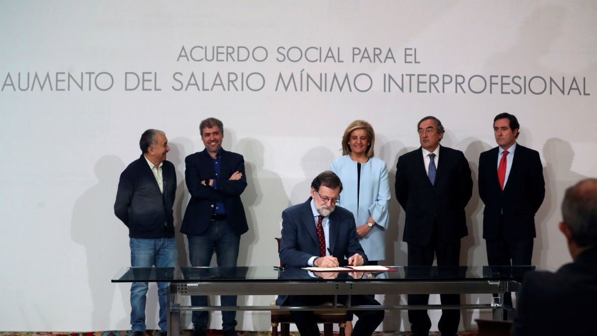 Rajoy sella con sindicatos y patronales la subida del salario mínimo hasta los 850 en 2020