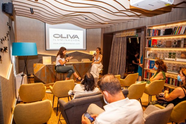 Juntas hicieron un repaso a la trayectoria profesional de Raquel Oliva y su experiencia al frente de una de las compañías referentes en iluminación de nuestro país, así como de la larga y estrecha relación de Oliva Iluminación con Casa Decor, los proyectos más icónicos que han llevado a cabo durante estos años y aquellos en los que este año participa, como el propio «Lounge by AC Hotels By Marriot», «Sweet Camila» de Soledad Ordoñez y «La Corte de los Milagros», de Sara Folch.