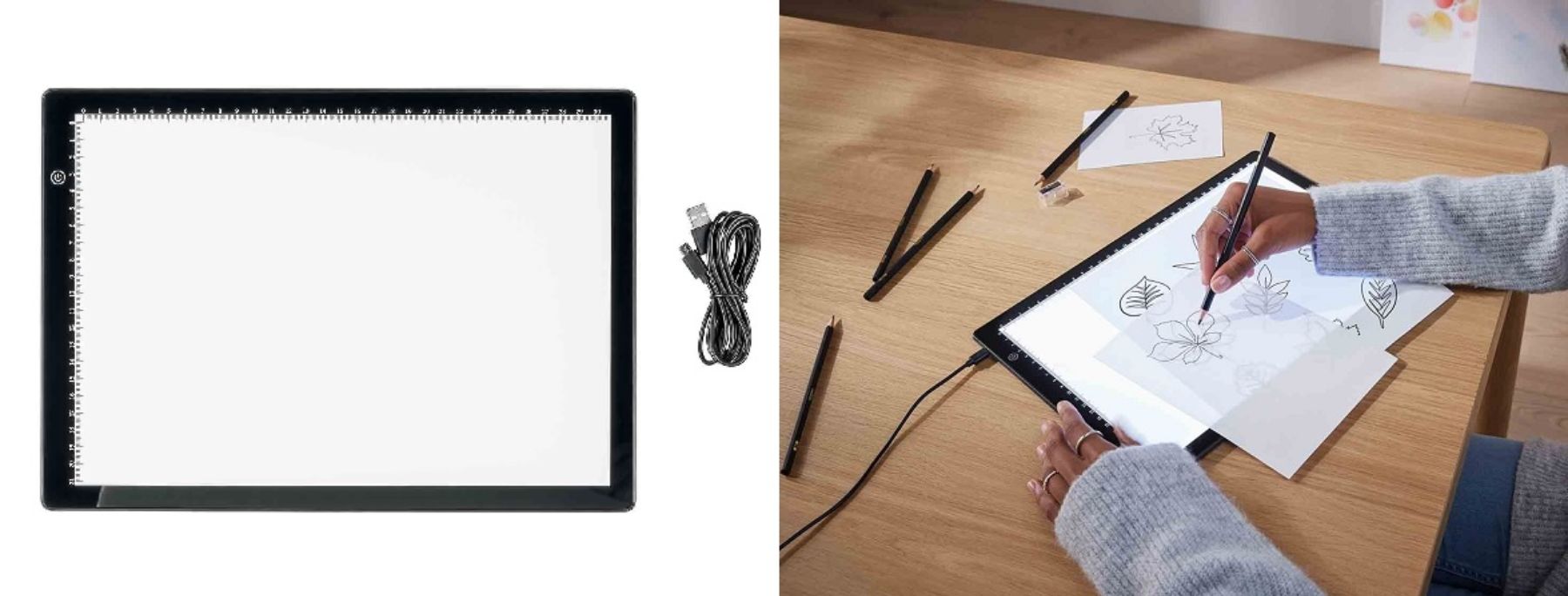Se trata de la Mesa de luz LED que ves en imagen. Un regalo creativo que está siendo uno de los más vendidos del bazar de Lidl. Esta es una mesa que se asemeja a una tablet y que cuenta con una luz LED con una potencia de 4 watios y que sirve para que podamos hacer dibujos perfectos ya sea que queramos hacer bocetos propios o quizás, queramos «copiar» a partir de un dibujo ya establecido.