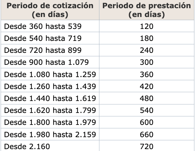 - Desde 2.160: 720 días de prestación.