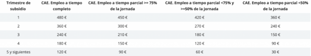 Por su parte, a los beneficiarios de un subsidio del SEPE se les aplicará automáticamente el SEPE cuando accedan a un trabajo por cuenta ajena a tiempo parcial o completo. El requisito será haber cotizado al menos un mínimo de 90 días y la duración también será de al menos 180 días. Las cuantías serán las siguientes, dependiendo de la jornada laboral.