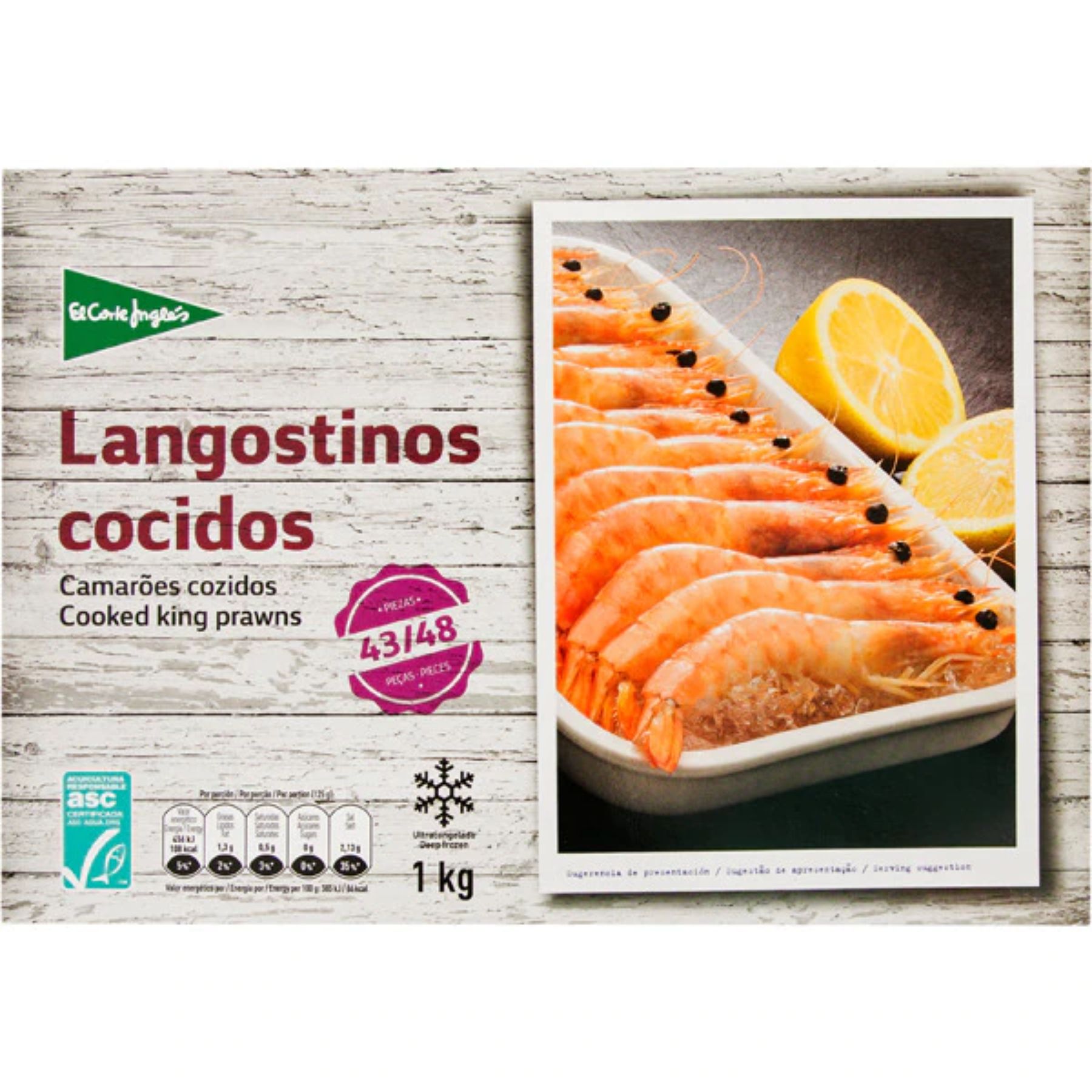 Y según el baremo de la OCU, los mejores langostinos congelados de supermercado los puedes encontrar en El Corte Inglés que han logrado colocarse en primera posición del ranking de su análisis en lo que respecta a la calidad-precio. Langostinos que podemos comprar en un estuche que tiene un kilo de peso, con 43-48 piezas y cuyo precio es de 11,99 euros.