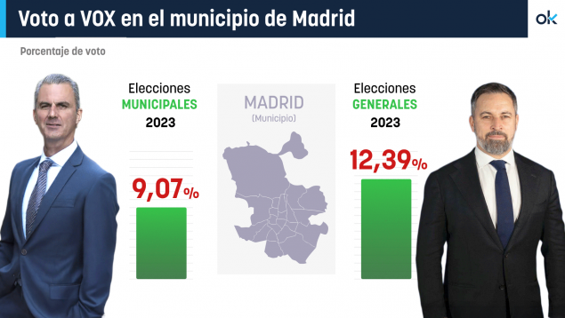 Abascal obtuvo un 6% más de apoyos en Madrid en las generales que Smith en las municipales