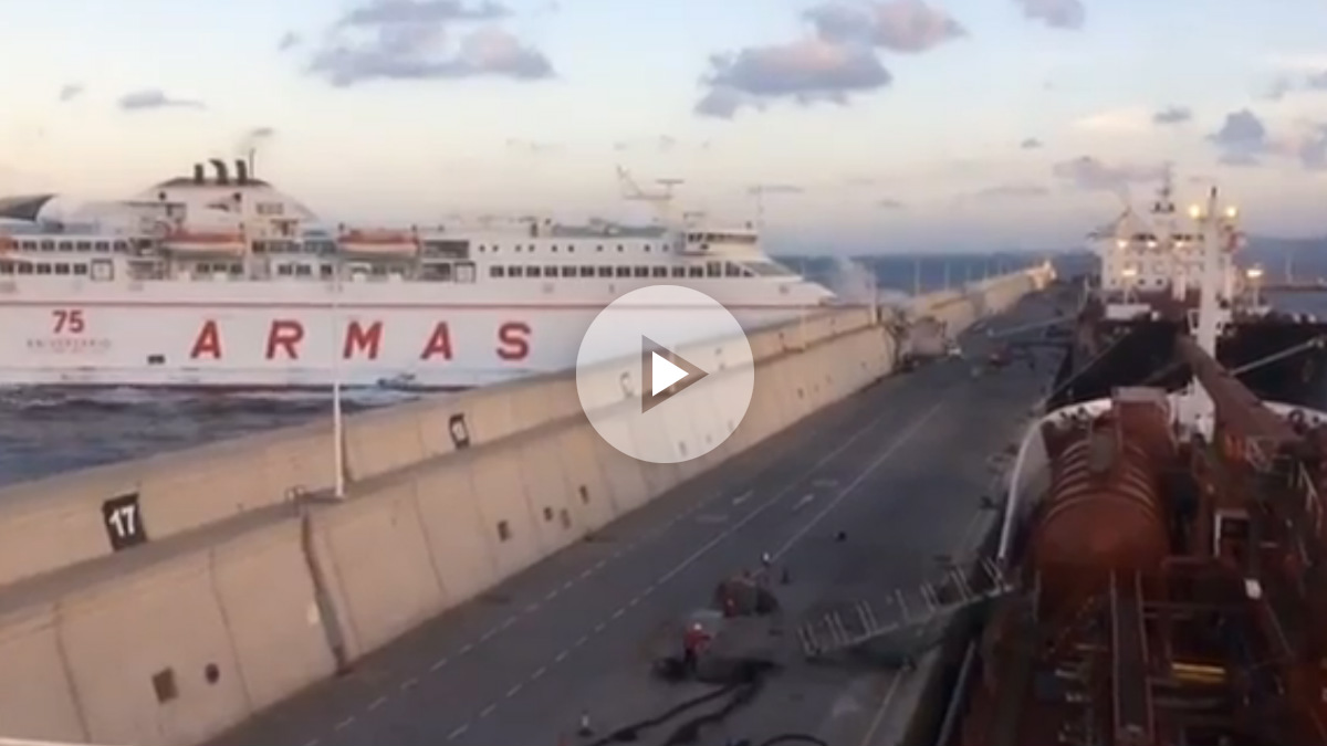 Aquí el ferry Las Palmas-Tenerife, chocando ayer contra el muelle.