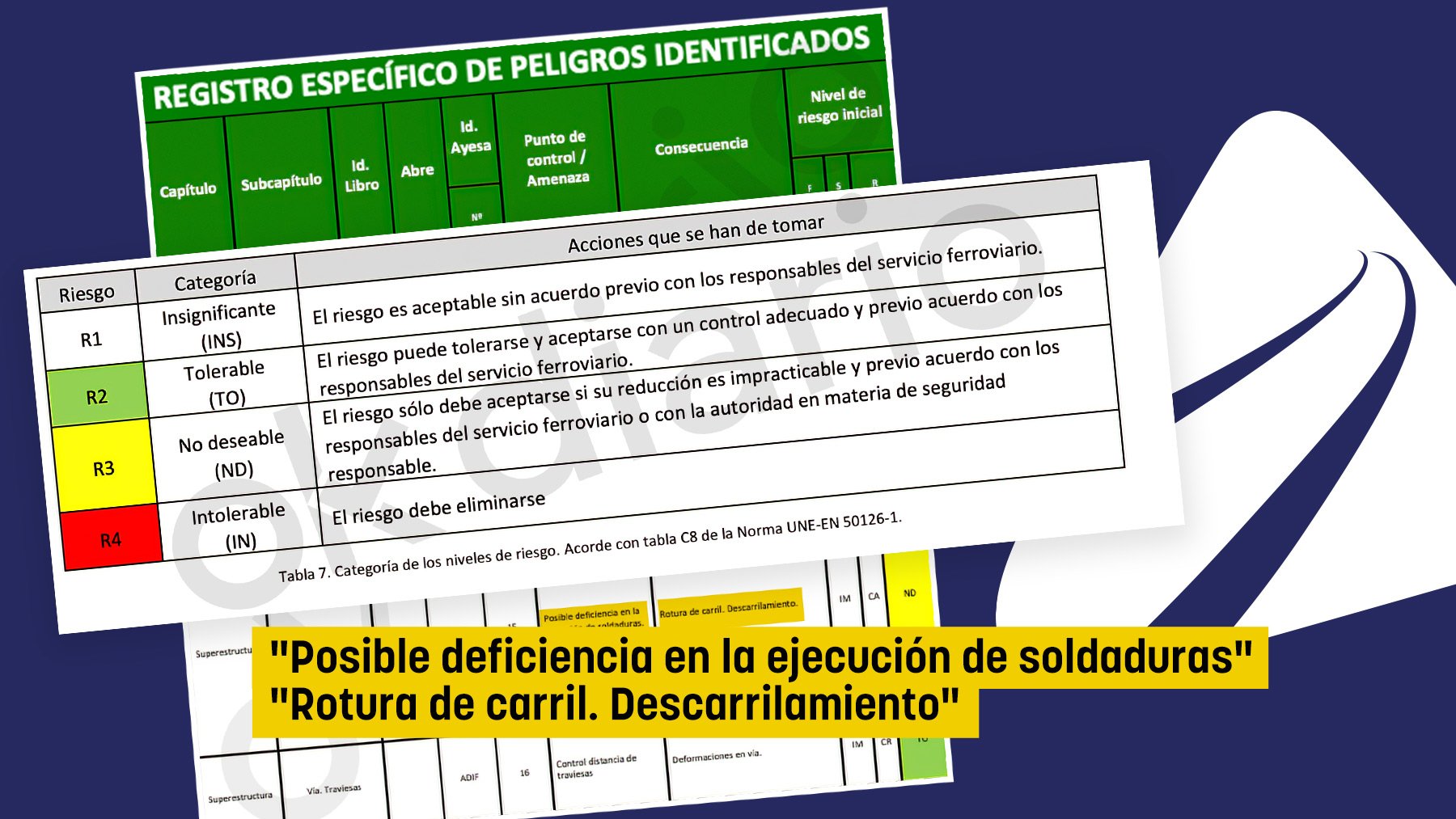 Adif calificó como riesgo medio la «deficiencia en las soldaduras» de la obra de Adamuz, cuyas consecuencias serían la «rotura de carril» y posterior «descarrilamiento». Ese riesgo se recoge en el «registro específico de peligros identificados» elaborado en concreto para el proyecto de renovación «integral» del tramo Guadalmez-Córdoba. En ese tramo se localiza el punto exacto del trágico descarrilamiento del tren Iryo y el impacto del Alvia.