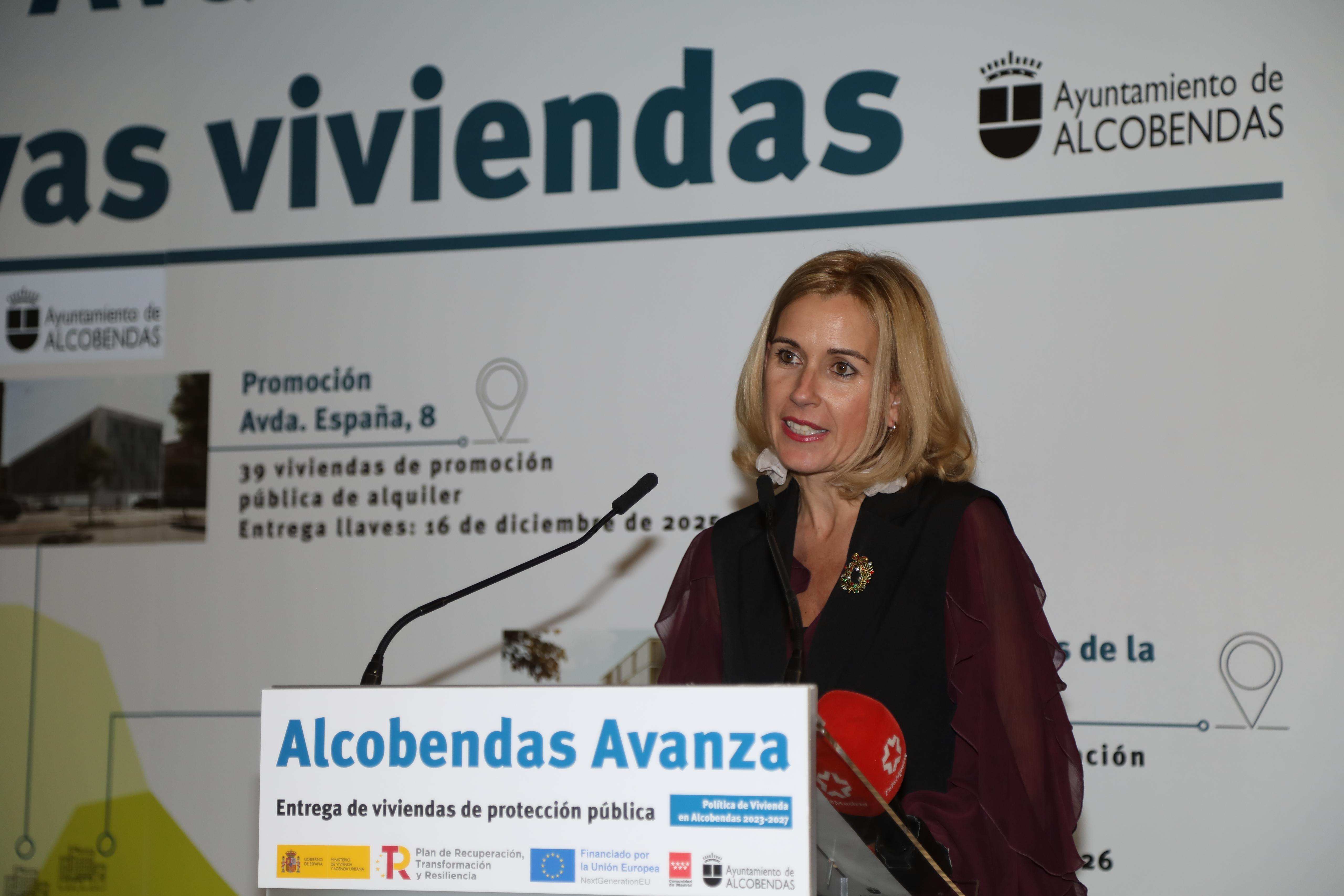 La alcaldesa de Alcobendas, Rocío García Alcántara, ha entregado las llaves de esta promoción, la primera de las seis planificadas en el programa municipal de impulso a la vivienda, y que prevé la entrega de unas 900 viviendas hasta finales de 2027, y hasta 10.000 viviendas en los próximos diez años, con el desarrollo urbanístico de Los Carriles Valgrande.
