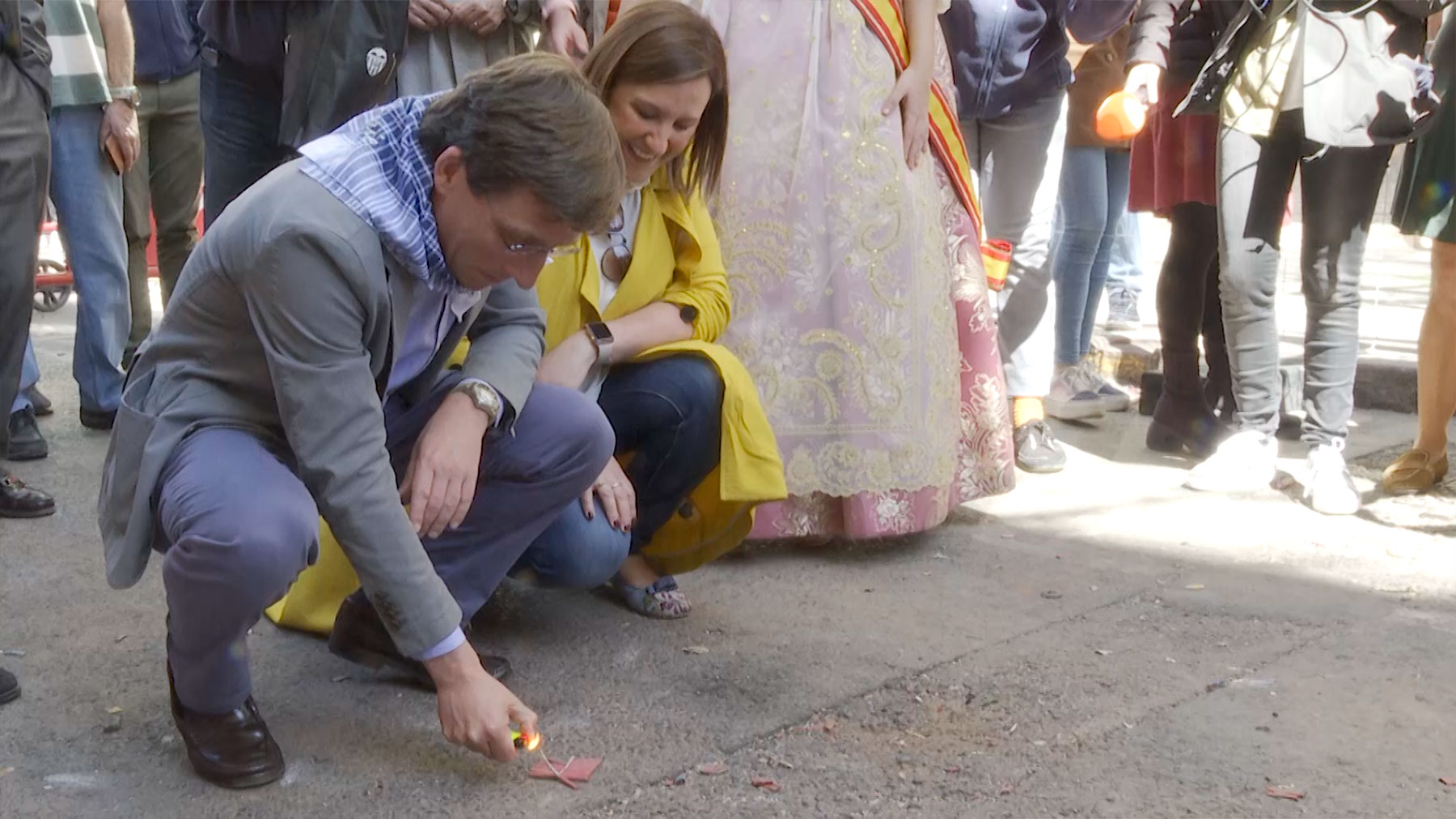Almeida bromea en la ‘mascletà’ de Valencia: «Porque tire un petardo no se va a caer la ciudad… ¿O sí?»