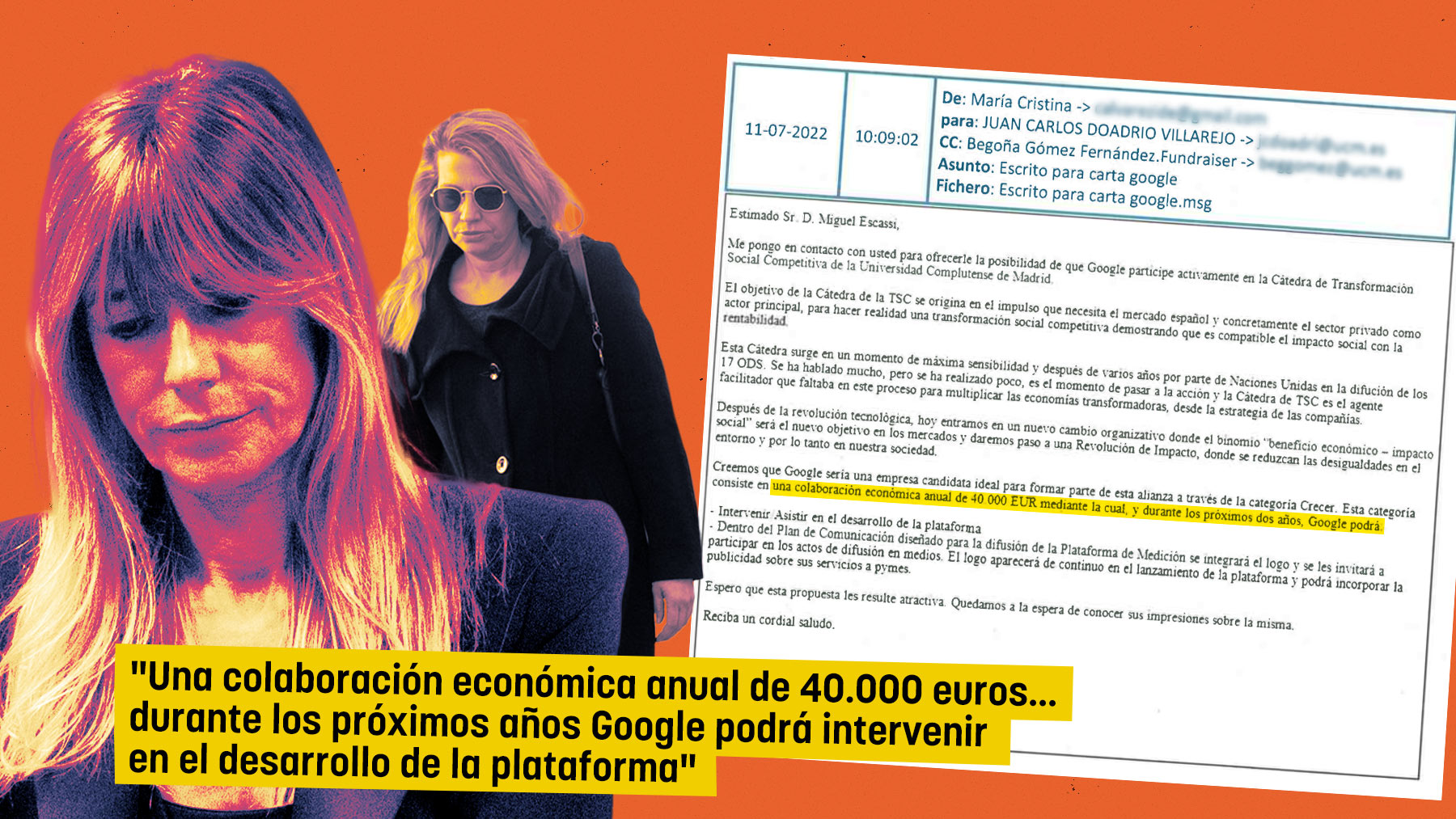 El día 11 de ese mismo mes, Cristina Álvarez envió un mail al entonces vicerrector de la Complutense, Juan Carlos Doadrio, en el que se le remitía una carta dirigida a Google para pedir su colaboración con la cátedra. En la misiva se solicitaban, en concreto, 40.000 euros a la empresa.
