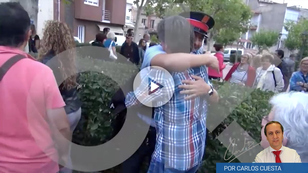 El extraño festival de inconstitucional acaba con todo un repertorio de abrazos, gritos de “viva los Mossos”, “los Mossos nos han defendido” y besos con los agentes de los Mossos que en ningún momento se reprimen y festejan la ilegalidad emocionados.