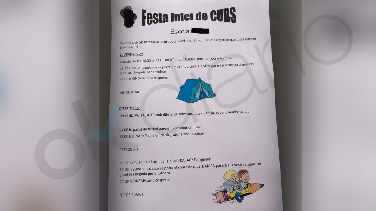 La carta, llena de dibujos infantiles, oculta totalmente el objetivo. Habla de celebrar el inicio de curso, cuando los cursos hace ya semanas que han empezado.