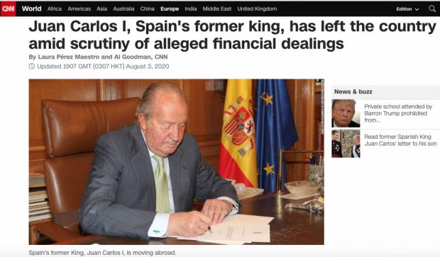 Desde la CNN destacan que «Juan Carlos I, el ex Rey de España, abandonó el país en medio del escrutinio de supuestos negocios financieros». «El ex Rey de España, Juan Carlos I, quien dirigió a la nación de la dictadura a la democracia, abandonó el país en medio del escrutinio de sus supuestos negocios financieros», recogen en su pieza.