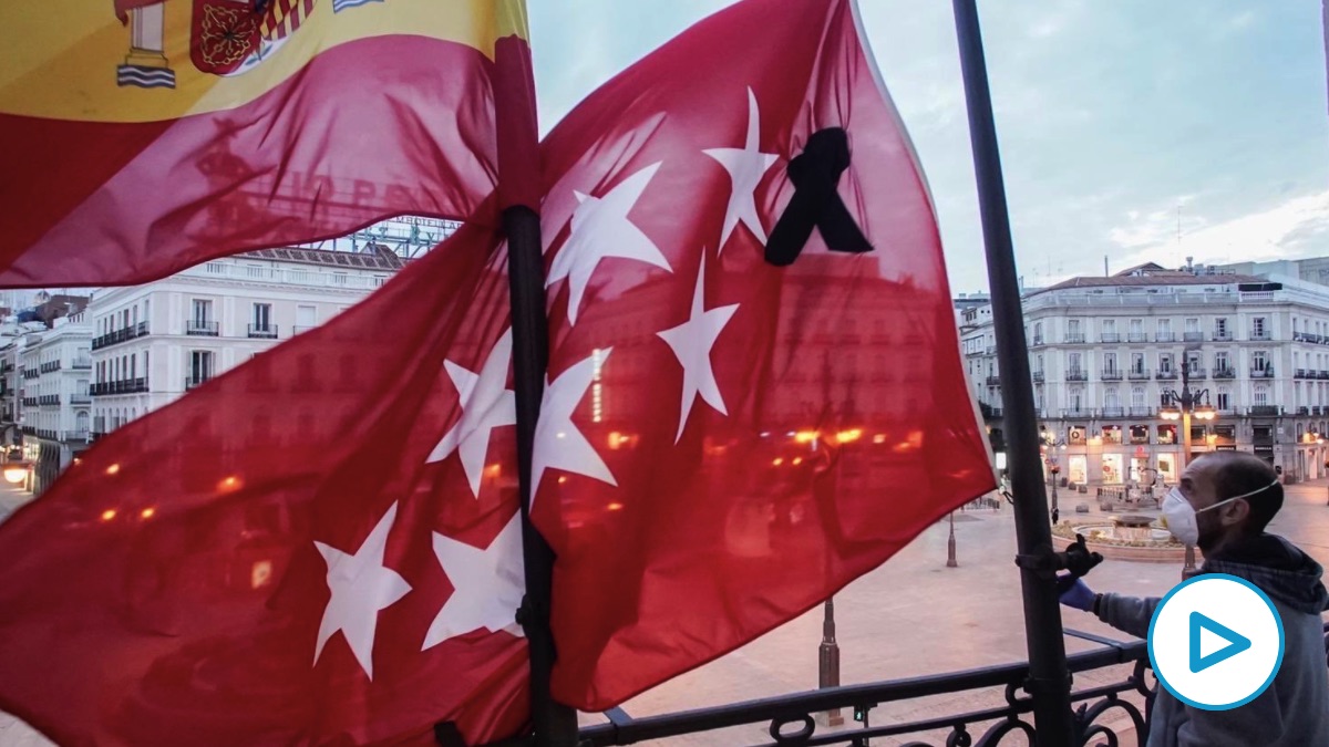 La Comunidad de Madrid, que tiene su sede en la Real Casa de Correos, ha colocado las banderas a media asta y con crespones negros. Un gesto que se replicará en todos «los edificios públicos donde su uso sea obligatorio hasta nueva disposición». Además, la presidenta regional, Isabel Díaz Ayus,o ha decretado el luto oficial desde este lunes «en señal de condolencias y en memoria del elevado número de fallecidos por el coronavirus».