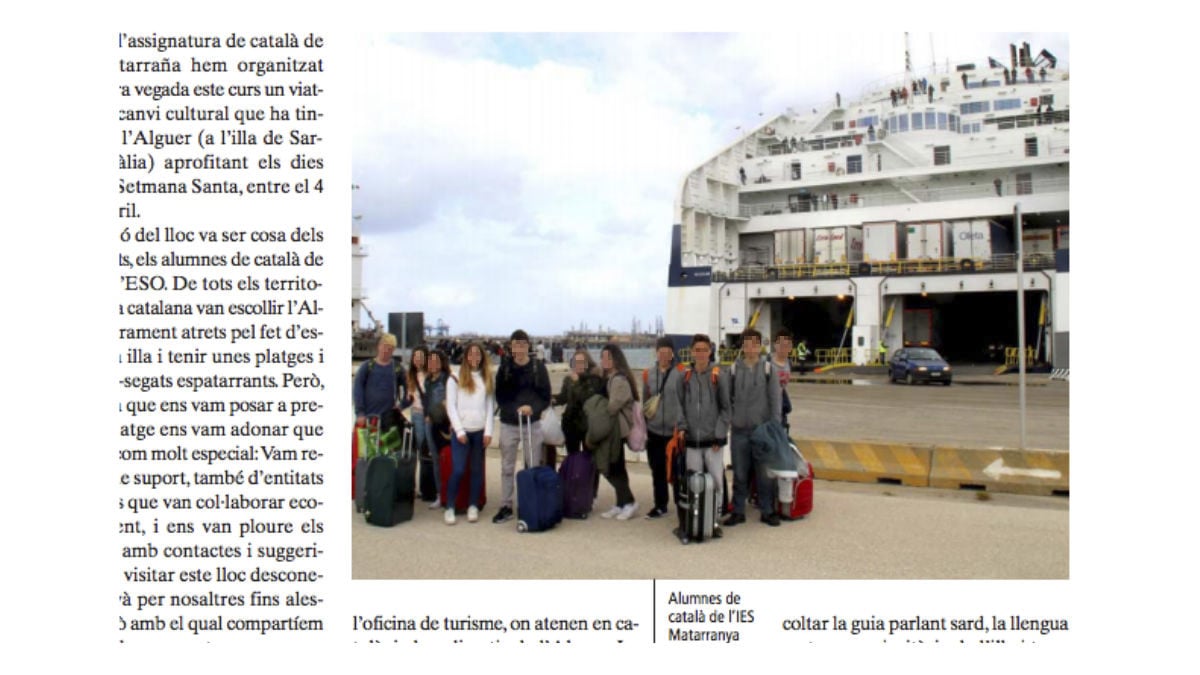 Así ocurrió recientemente con una visita de estudiantes del Instituto de Educación Secundaria de Matarraña -localidad de Aragón limítrofe con Cataluña- a Alguer (Cerdeña), donde fueron recibidos por una delegación de representantes de esa asociación.