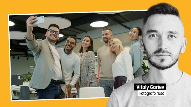 Así, en dicha página web puede verse de forma destacada una foto de uso gratuito, con licencia libre de derechos de autor y firmada por el fotógrafo Vitaly Gariev, de origen ruso. En esta instantánea aparecen «compañeros de trabajo tomándose un selfi en la oficina con un smartphone y posando sonriendo», según reza en la descripción.