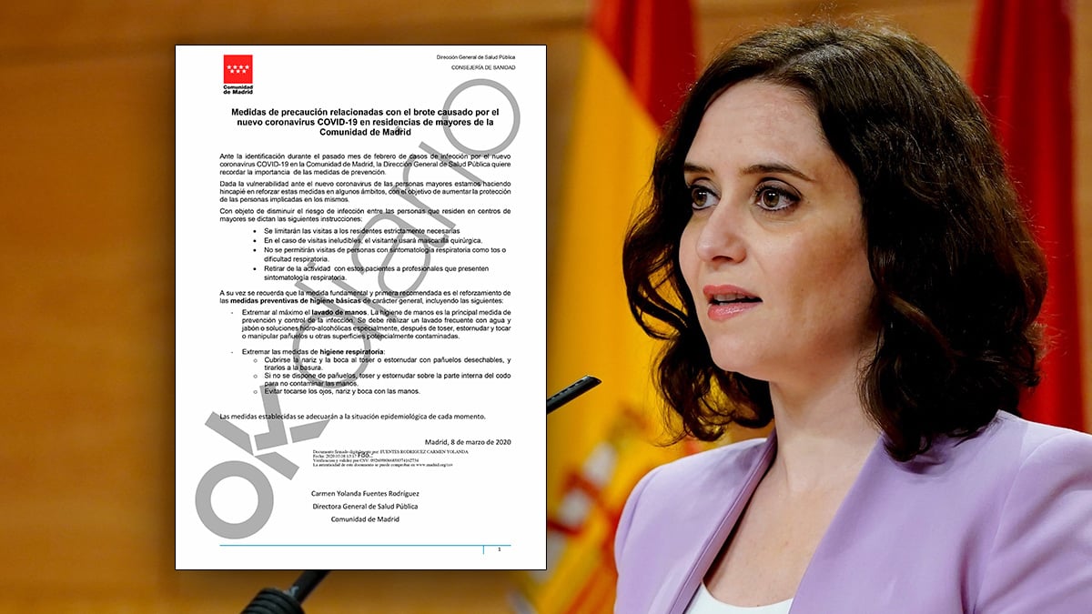 La presidenta de la Comunidad de Madrid, Isabel Díaz Ayuso, comenzó a tomar medidas drásticas hace más de dos semanas para evitar el contagio de coronavirus en las residencias de ancianos. Lo hizo exactamente el pasado 6 de marzo, dos días antes del 8M cuando el Ejecutivo de Pedro Sánchez jaleaba una manifestación que aglutinó a más de 120.000 personas en Madrid. Una de las 400 marchas que se celebraron en toda España. Dos días antes, Ayuso ya ordenó el confinamiento de ancianos para evitar su contagio, impuso severas restricciones a las visitas desde el exterior y prohibió que los alumnos de Medicina rotaran por los hospitales propagando el virus.