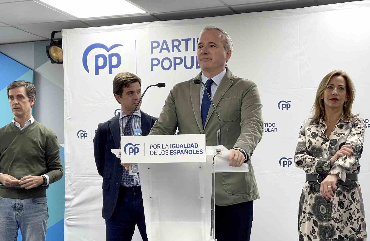 «Es un precio demasiado alto para nuestra democracia», ha valorado Azcón en la sede del PP de Zaragoza, los intentos de Pedro Sánchez por «seguir durmiendo en Moncloa». «No vamos a callarnos», ha expresado con contundencia, ante la ley de la Amnistía, que «es un traje a medida» y «no cabe en la Constitución».