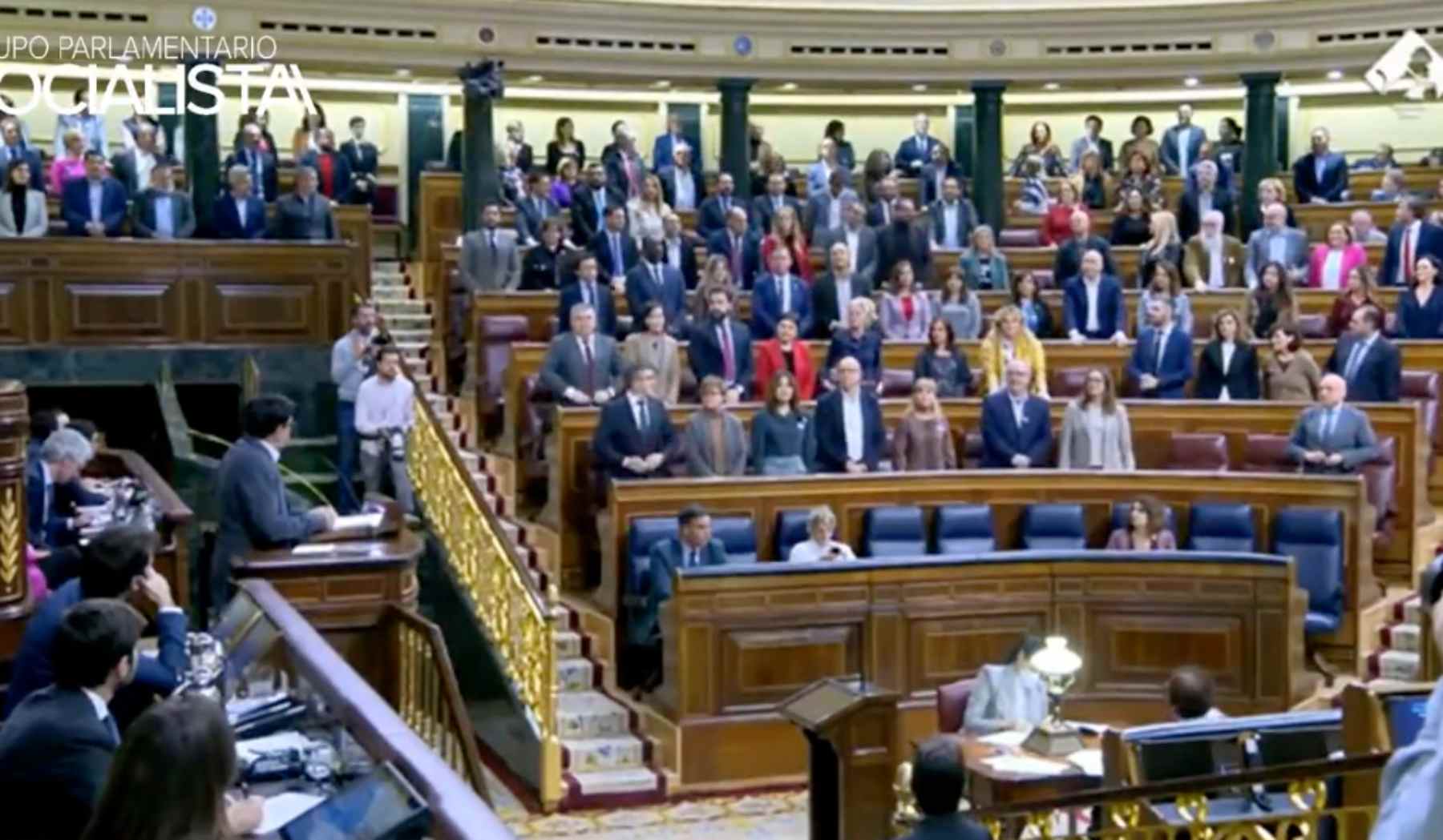 La bancada del PSOE se pone de pie para eliminar la sedición: «Aquí estamos los socialistas juntos»