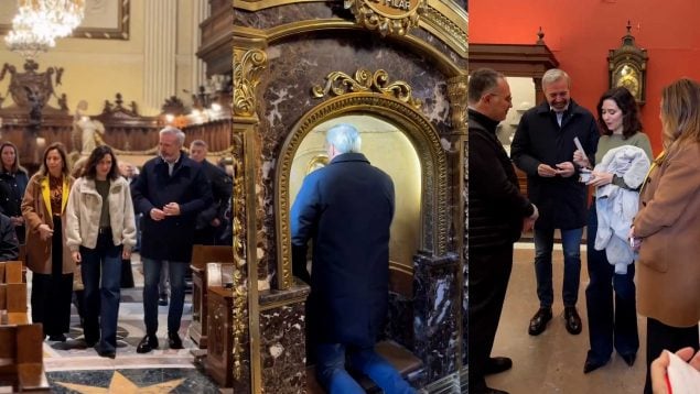 Por su parte, la líder madrileña ha reflejado en una publicación su visita a Aragón, cuya primera imagen está besando el Pilar de la Virgen, así como varias fotografías saludando a feligreses.