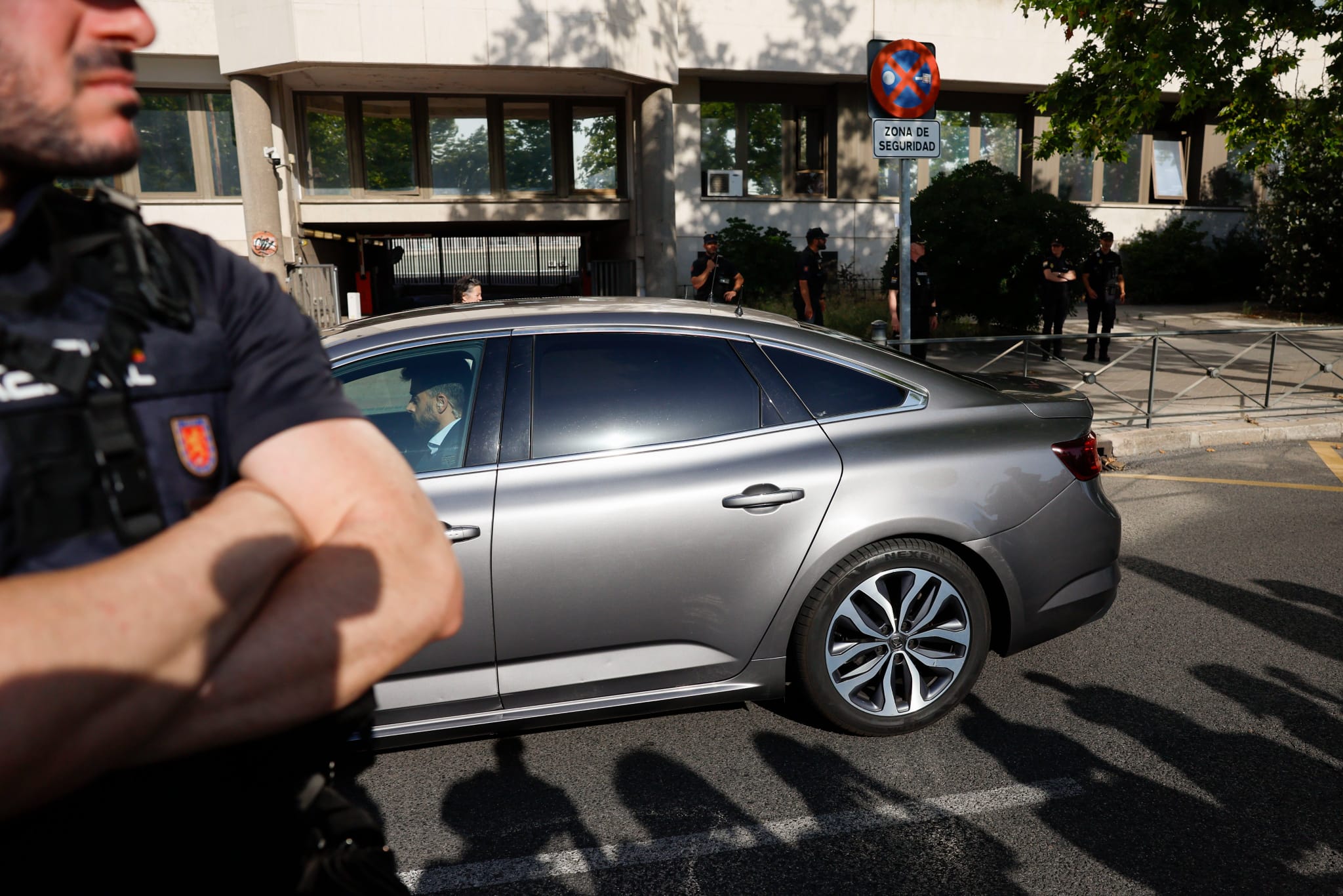 Begoña Gómez entró y salió de los juzgados agachada en un coche oficial con los cristales tintados